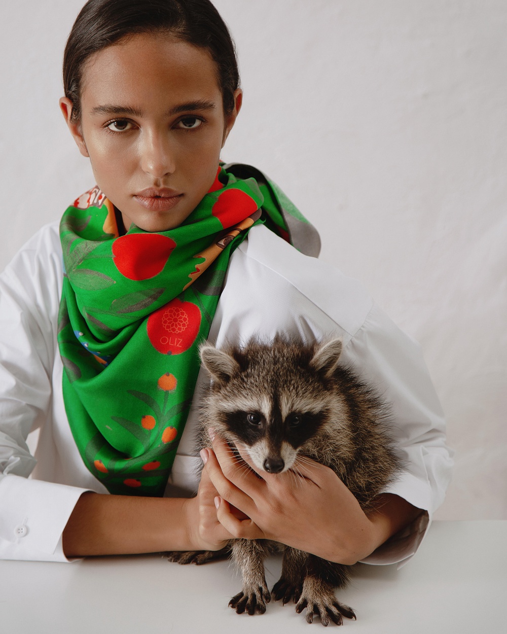 Нова колекція Oliz присвячена роботам Марії Примаченко та має назву «Казки родини Примаченко». До неї також увійшли картини сина художниці Федора, який був її учнем, та онука Івана. Обидва успадкували талант художниці та продовжили працювати у напрямку наївного мистецтва. Казкові світи родини Примаченків дизайнерка бренду поселила на найкращому коштовному шовку твіл. Завдяки виблиску тканини, її переливам та фактурі, можна побачити малюнки з іншого боку.
