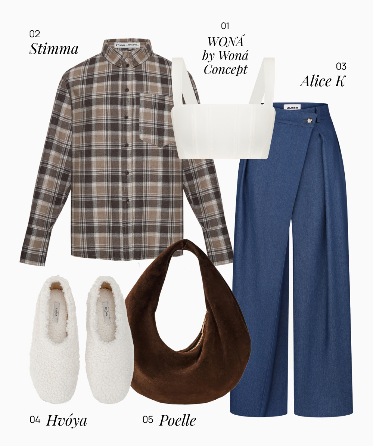 Наприклад, класичний білий корсет можна носити під картатою оверсайз-сорочкою, створюючи комфортний вигляд для щоденних справ. Доповнити його можна текстурними аксесуарами, такими як замшева сумка або м`які хутряні балетки, що додають затишку.