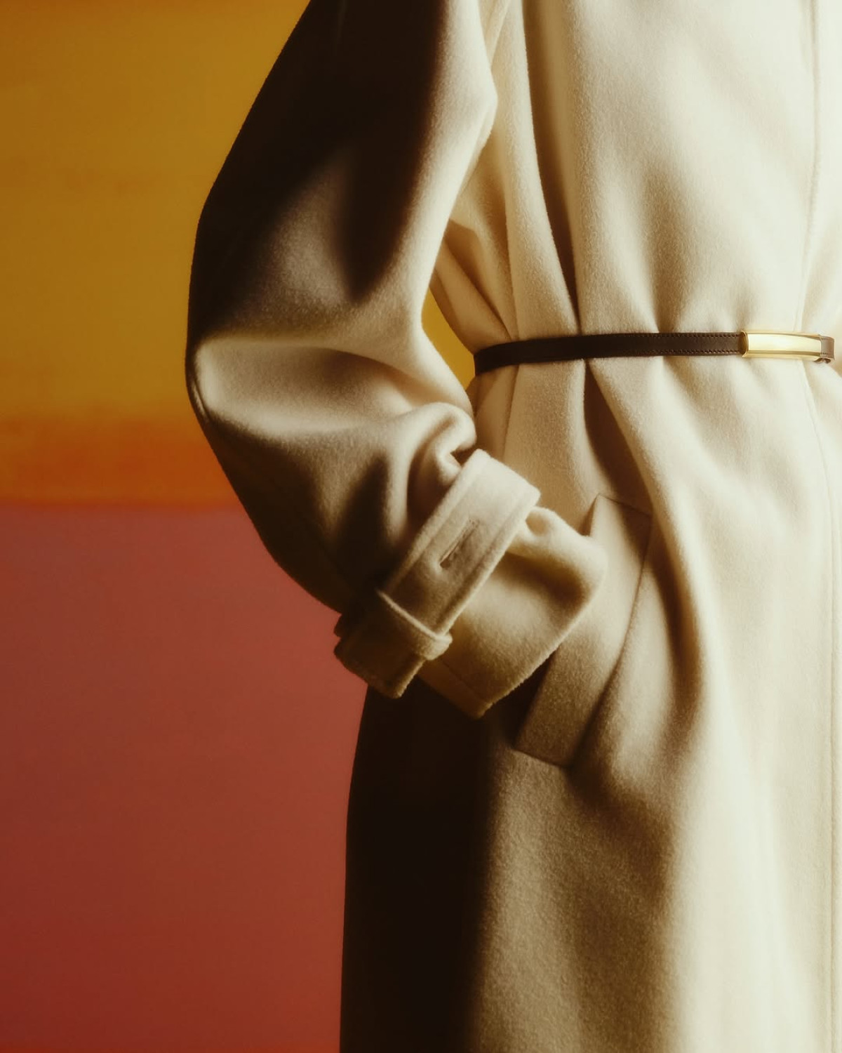 Весняний силует стає більш приталеним, і навіть якщо пальто залишається вільного крою, його талію тепер окреслюють паском. Це не просто естетичний прийом, а стилістичний хід, що додає образу графічності. У цьому сезоні дизайнери грають із формами: кілька витків ременя або ж навпаки — один тонкий мінімалістичний пасок змінюють пропорції й додають виразності силуету. Ще один прийом — заправити пару рукавичок за пасок, створюючи effortless-ефект, ніби деталі образу склалися самі собою. Безпрограшні моделі були знайдені у Poelle: лаконічні, витончені, вони не перетягують увагу, але роблять образ довершеним.