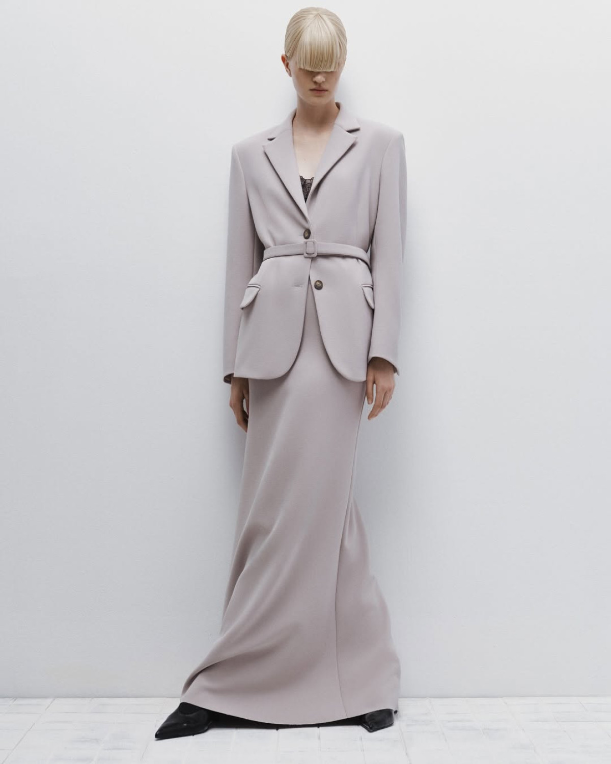 Без них цієї весни не обійтися. І якщо йдеться про справжній тренд, то приталені жакети з акцентом на талії — ось що визначатиме стиль сезону. Лінія паска додає елегантності та витонченості, підкреслюючи жіночність. Трендовою довжиною спідниці (та і брюк також) стає гіперболізована максі. Серед ключових відтінків — вічна пастель. Наш фаворит у заданій системі координат — костюм від Pustovit теплого сірого відтінку, що залежно від підібраного взуття та аксесуарного ряду може стати основою образу як для повсякдення, так і для офіційних заходів.
