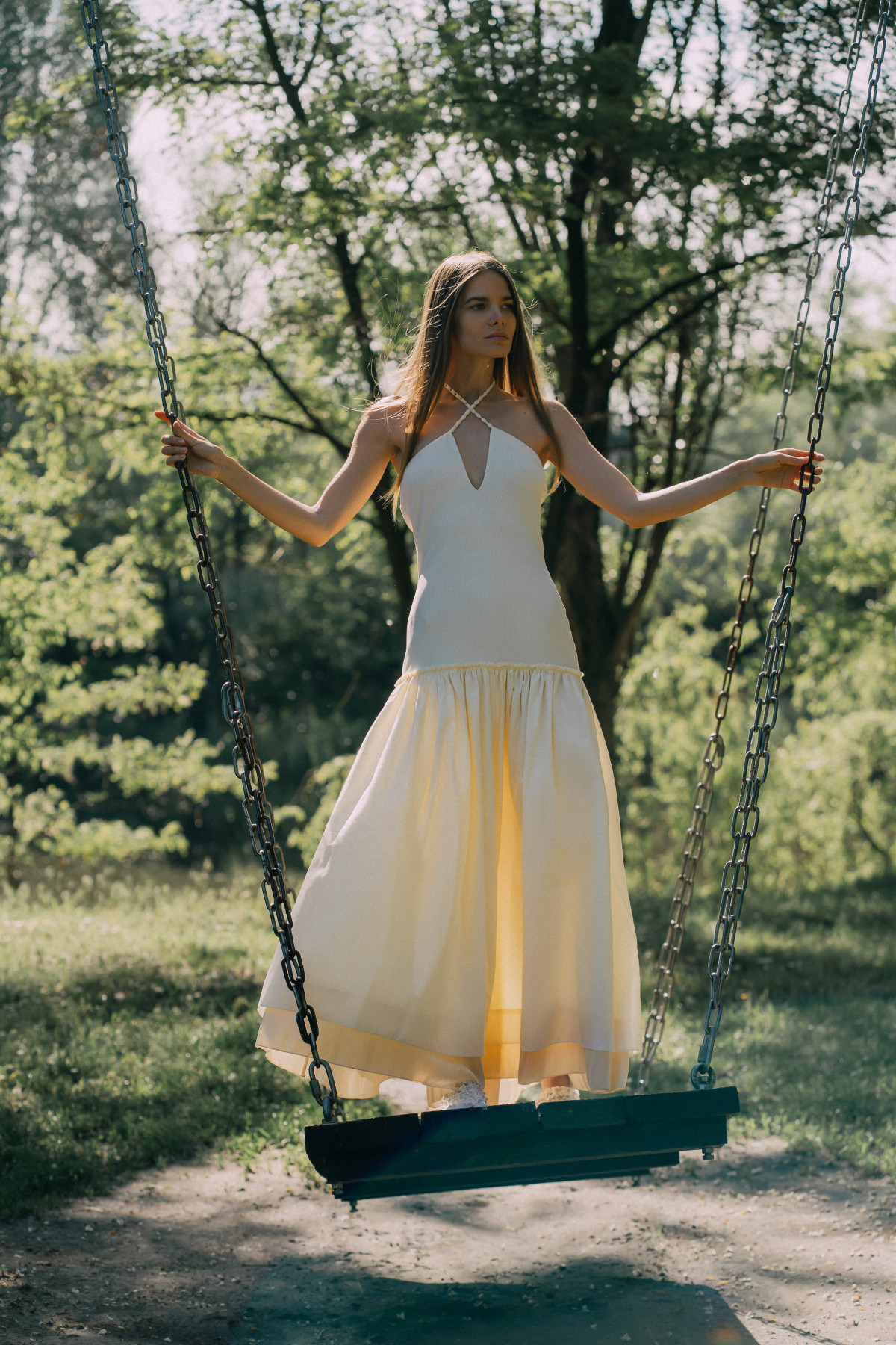 Серед іспанського ландшафту, подекуди пустельного, персонажка бренду BOBKOVA надає перевагу легким та обтікаючим фактурам. Естетика колекції, хоч й натхненна героїнею української міфології, органічно перегукується з горизонтами Марбельї. Кольори — від молочних відтінків до ніжно-блакитного та бірюзового — створюють оазу спокою та гедонізму.