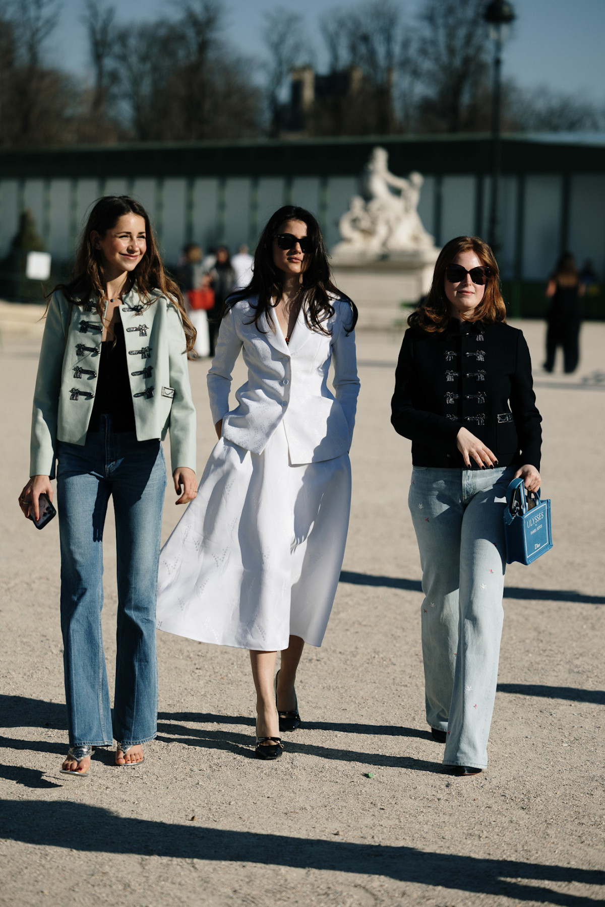 На стритстайл-хроніці з Парижа можна знайти кілька цікавих варіантів у поєднанні з прямими джинсами. Перший — це «гусарські» жакети. Головне правило в цьому випадку — один предмет одягу має бути темнішим за інший. Наприклад, чорний жакет із блідо-блакитними джинсами або м’ятний жакет із класичними синіми джинсами.