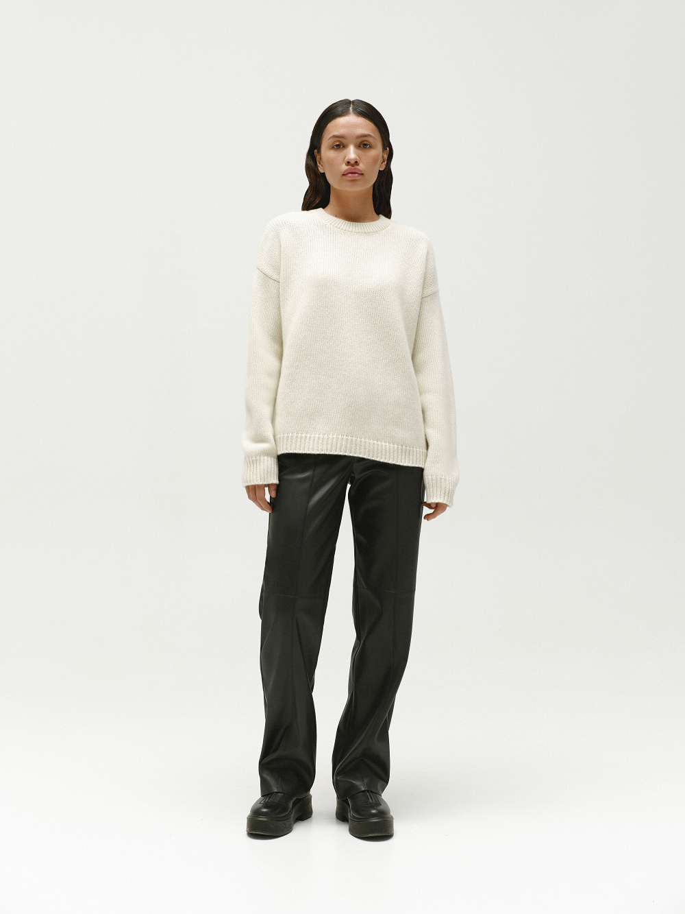 Справжній топтренд, який ще не скоро втратить актуальність, адже з кожним сезоном доводить свою універсальність і практичність — шкіряні штани. Тож ми впевнені, що ця модель від Hukh слугуватиме вам роками. З нею ви можете скласти total look, доповнити її затишним светром або сорочкою та жакетом, черевиками, кросівками чи туфлями на підборах.