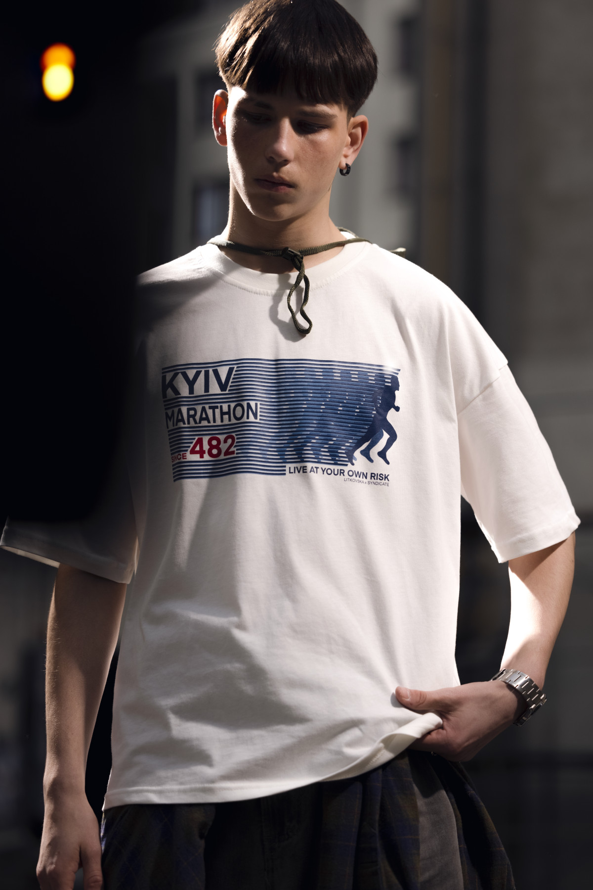 Ця колекція — про вибір лишатися вдома і рухатися вперед, незважаючи ні на що. Три футболки, кожна з яких — окрема історія: Kyiv Marathon, переможний дизайн Кирила Трухіна з натхненням від маршруток і рейв-постерів, а також Kyiv Focus Group. Число 482 на футболках — символ коду міста і року його заснування, нагадування про глибокі корені та стійкість Києва.