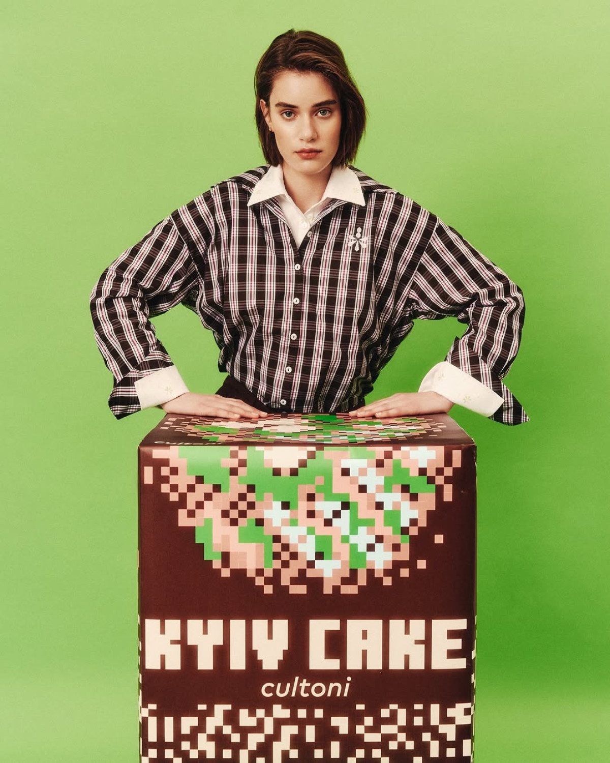 Каштанові листки й «Київський торт» — стилістичні символи столиці, переосмислені у рожевій та шоколадній палітрі. Ця капсула не лише про стиль, а й про підтримку: частина прибутку піде на створення військової форми для жінок на фронті.
