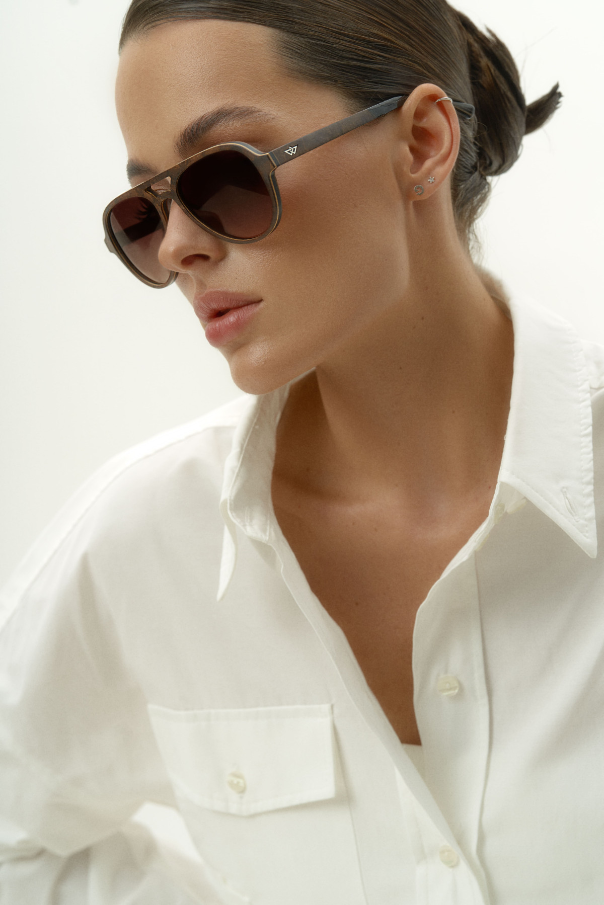 Колекцію сонцезахисних окулярів у новому сезоні радимо поповнити парою від Blackwood. Бренд виготовляє їх із деревини екзотичних порід та з використанням високоякісної оптики з поляризацією. Завдяки цьому вони надійно служать своїм власникам роками навіть при надактивному використанні. Що важливо: бренд дотримується принципів етичного виробництва, а всі пари підлягають реставрації або переробці.