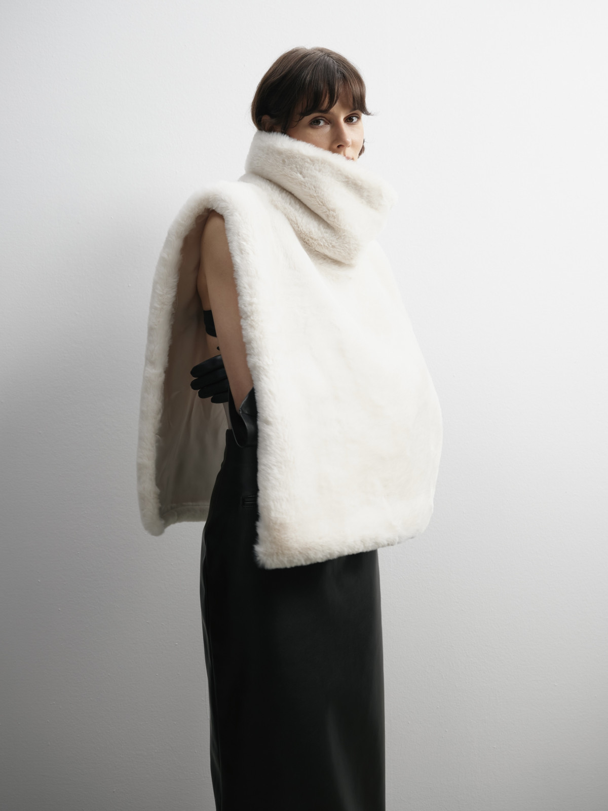 Серед аксесуарів у колекцію увійшли довгі та короткі рукавиці з екошкіри, а також трендова манишка з гладкого хутра.