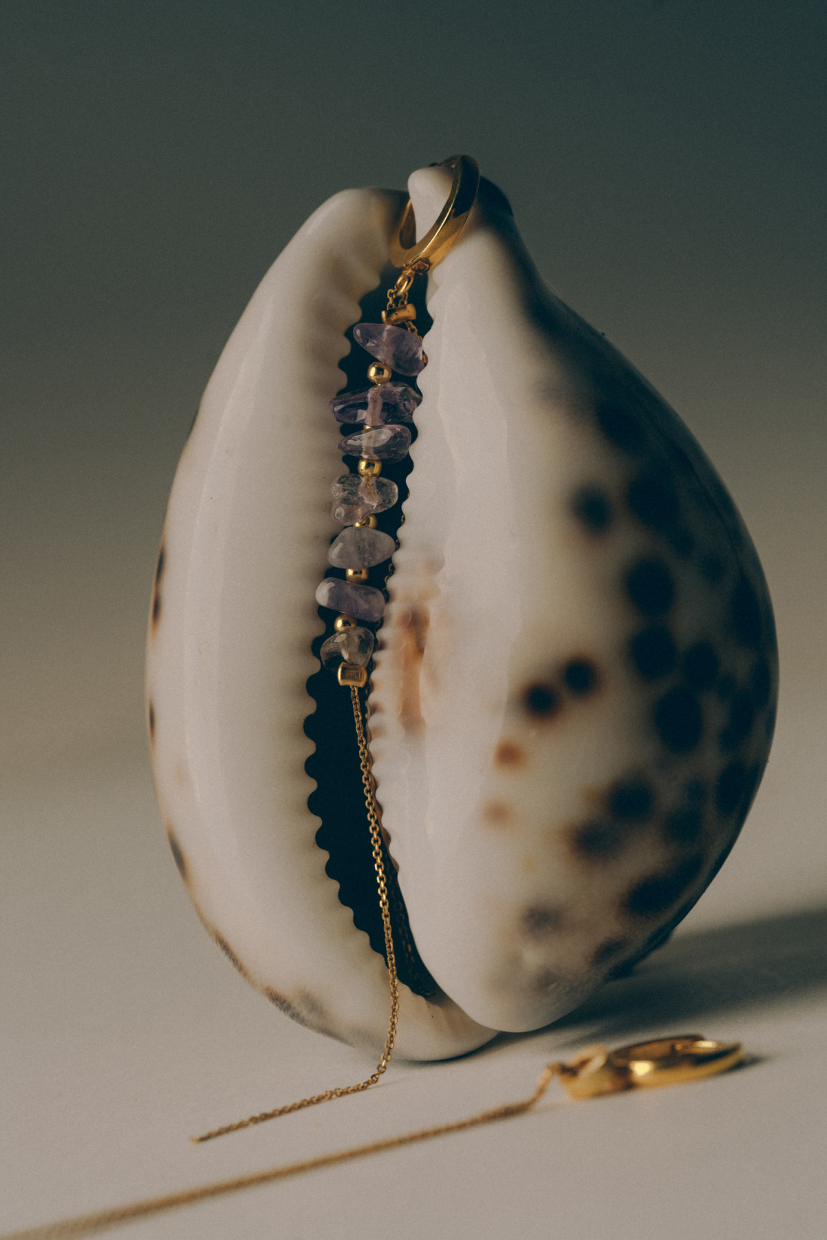 До колекції увійшли сережки, браслети та підвіски з бароковими та річковими перлами, аметистами та аметринами. Усі прикраси виготовлені вручну в Україні.