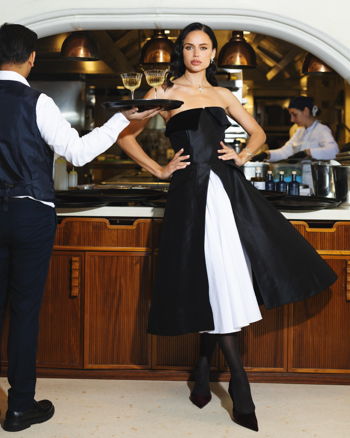Основу колекції складають сукні, жакети, штани, топи, корсети та блузи, що формують цілісні образи — від витонченої класики до сучасної елегантності. До колекції увійшли ключові речі сезону, які зараз активно шукають та зберігають в Pinterest: сукня з червоним акцентним бантом, сукня-жакет, сукня з контрастною підспідницею, сукня з об`ємом у двох кольорах, топ з відкритими плечима, об`ємна блуза, жилет з баскою та глибоким вирізом, жакет та штани з оксамитовими лампасами, майка з бантом на бретелях, шовкова спідниця та оксамитовий корсет. Кожна річ — готове рішення для новорічних вечірок, зустрічей з близькими та святкових виходів.