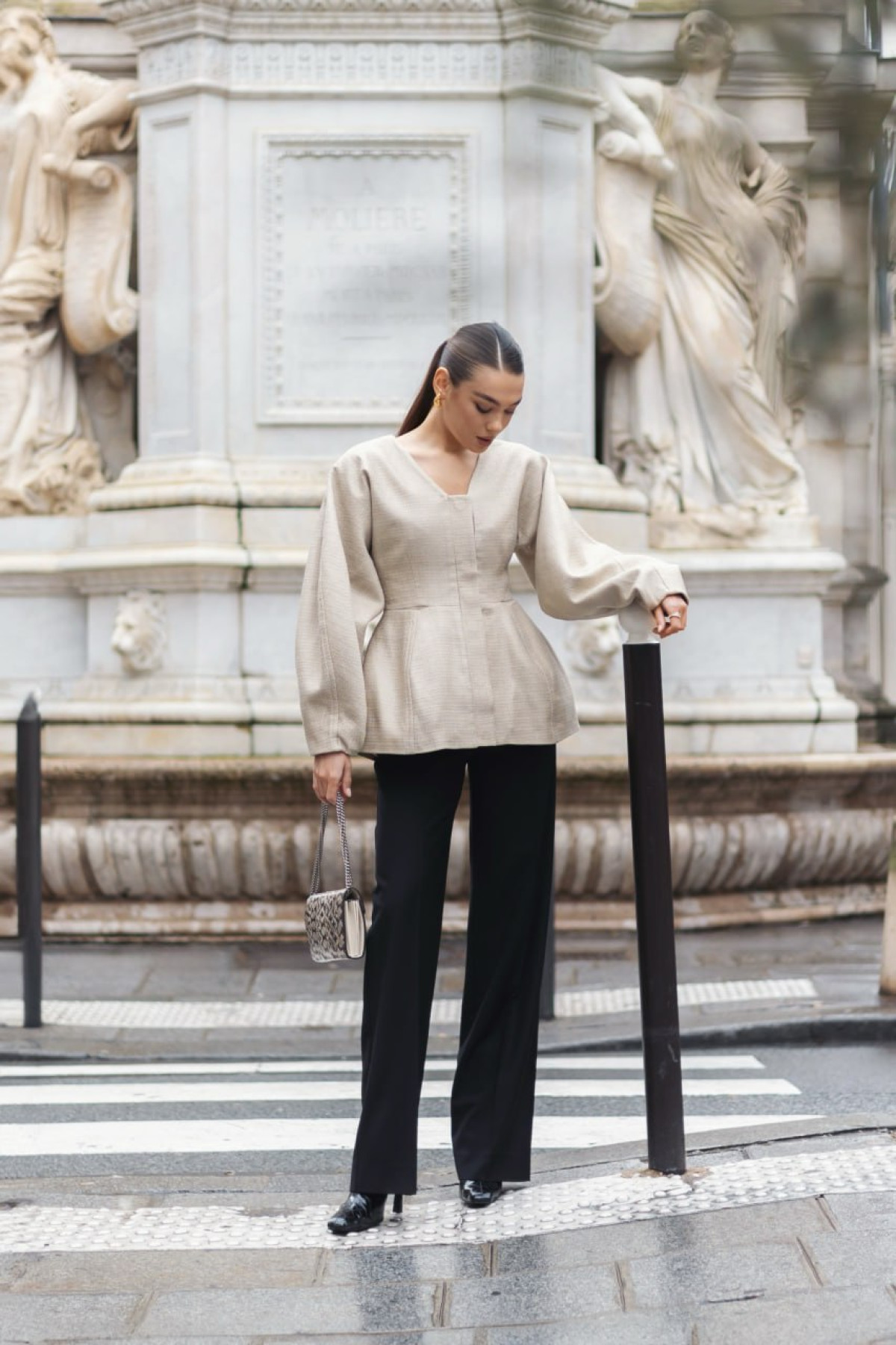 Працюючи над Spring Story, бренд акцентував на жіночності, елегантності та легкості, лагідно імплементуючи їх у звичний кежуал. Ця ідеологія транслюється у фасонах, тканинах та кольорах, а також повертає думками до актуальної класики. Яскраво репрезентує це комплект, що складається з корсета з ґудзиками з костюмної тканини та прямих штанів. Цей костюм є справжнім стейтмент-елементом, а верх і низ можуть складати безліч образів під різний настрій. Ніжності колекції додають силуетні сукні та довгі спідниці, які можна комбінувати з лонгслівами та оверсайз піджаками залежно від погоди. Натхнені весняною свіжістю, дизайнери додали новий відтінок деніму — ice blue (світло-блакитний), що ідеально підійде на теплі сезони. Серед інших позицій з деніму Fashionista створив комплект із жилетом та джинсами кльош, в якому хочеться провести всю прекрасну пору. Також елементи комплекту можна носити окремо, що додає простору для ідей та урізноманітнює вибір образів.