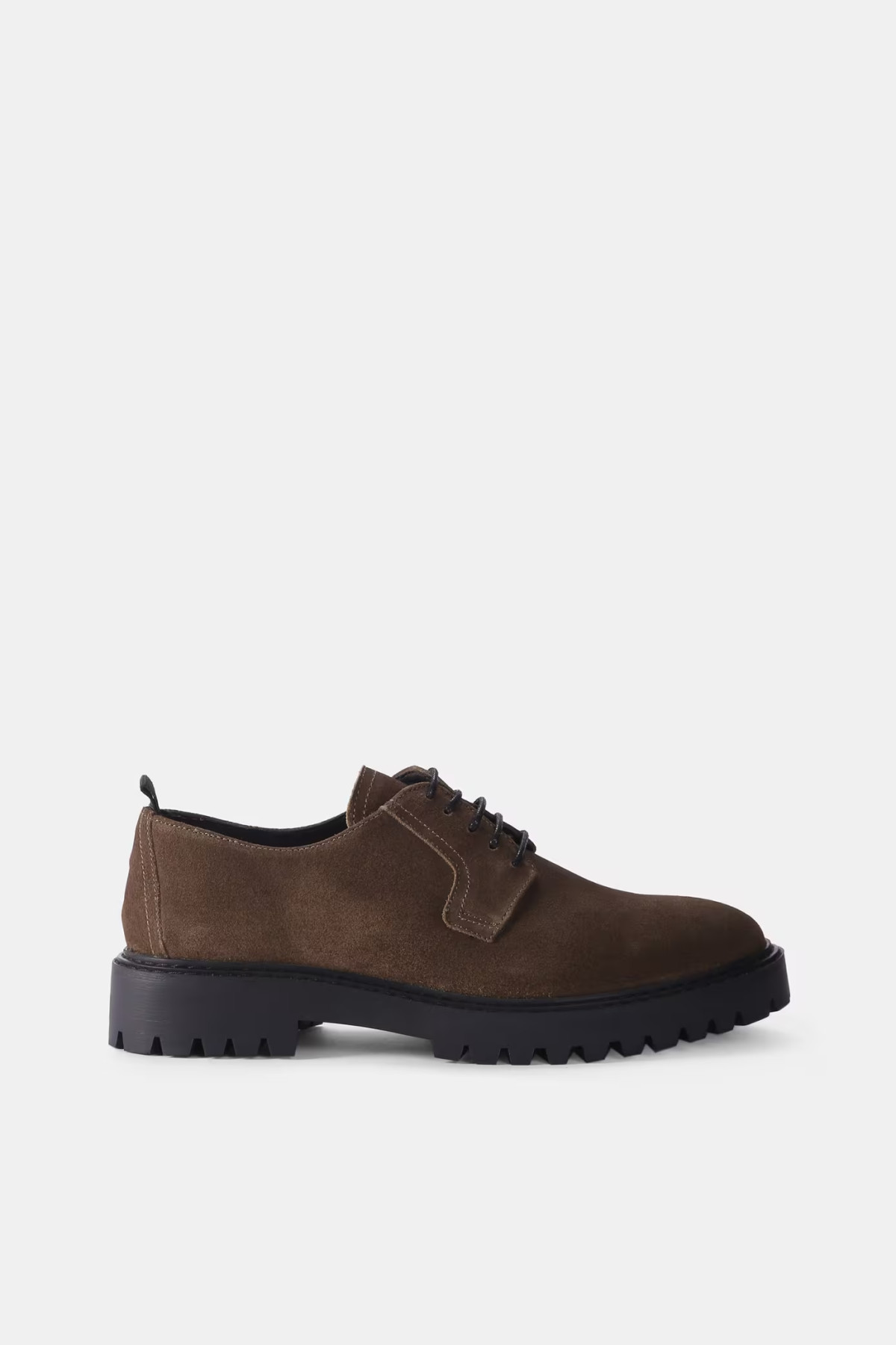 М’які за формою, але структурні за кроєм. Замша додає взуттю фактурності та робить його доречним і для офісу, і для вихідних. У відтінках гіркого шоколаду, темного беж чи графітового сірого вони добре поєднуються з вовняними брюками, джинсами або утилітарною курткою. Такий формат дербі — про практичну елегантність, яка тримає баланс між стилем і комфортом.