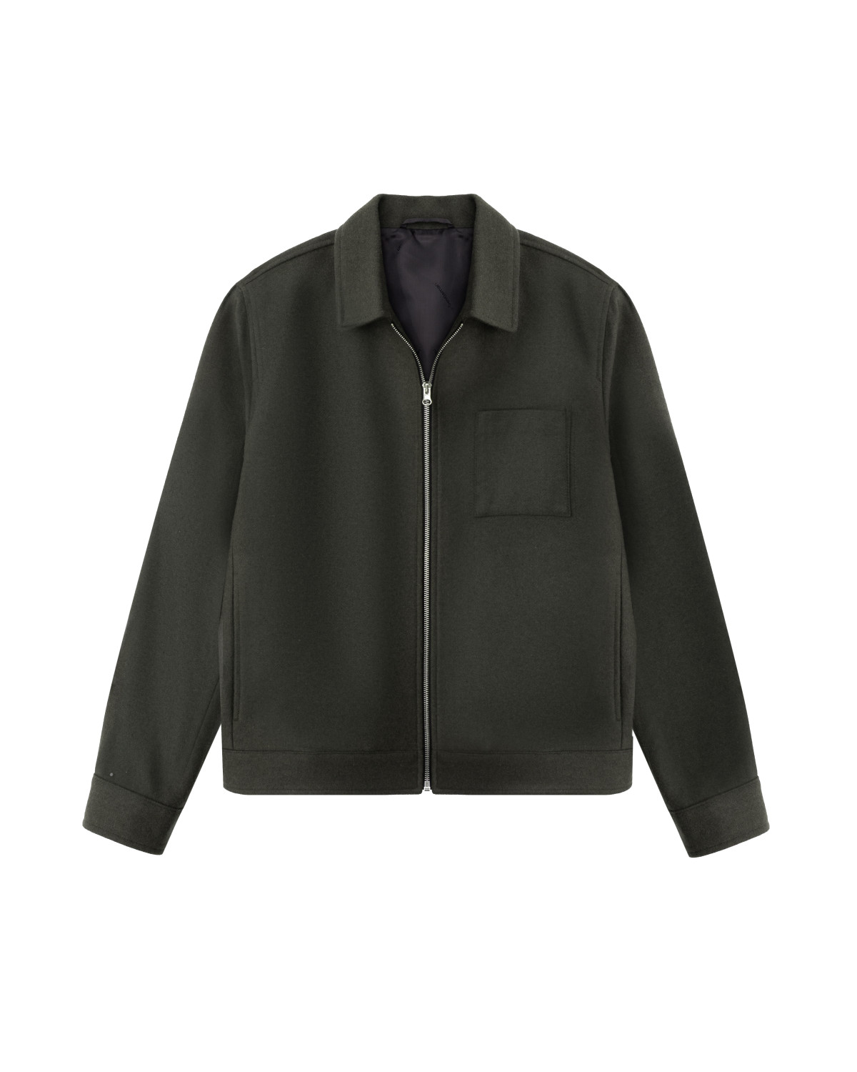 Лаконічна альтернатива класичному пальту, створена на стику міського мінімалізму й практичного smart-casual. Прямий силует, комір-сорочка і блискавка замість ґудзиків роблять цю куртку універсальною — її можна носити поверх сірого худі, светра шоколадного тону чи фланелевої сорочки у клітинку. Добре стилізується з широкими брюками або джинсами baggy, а завершують образ чорні шкіряні кеди чи замшеві дербі.