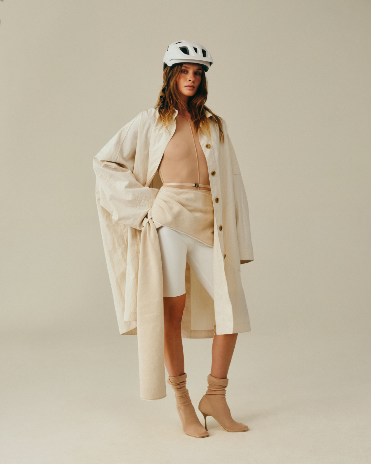 «Ми дуже часто стилізуємо контрастно — це один із наших улюблених прийомів. У показах ми одягали найбрутальніших моделей у найжіночніші образи, і навпаки. У цьому кампейні ми застосували той самий трюк: дуже ніжну, чуттєву колекцію ми застилізували в комбінації з урбаністикою та драйвом велоспорту. Це створює неочікуване, але дуже сучасне прочитання жіночності», — пояснює дизайнерка.
