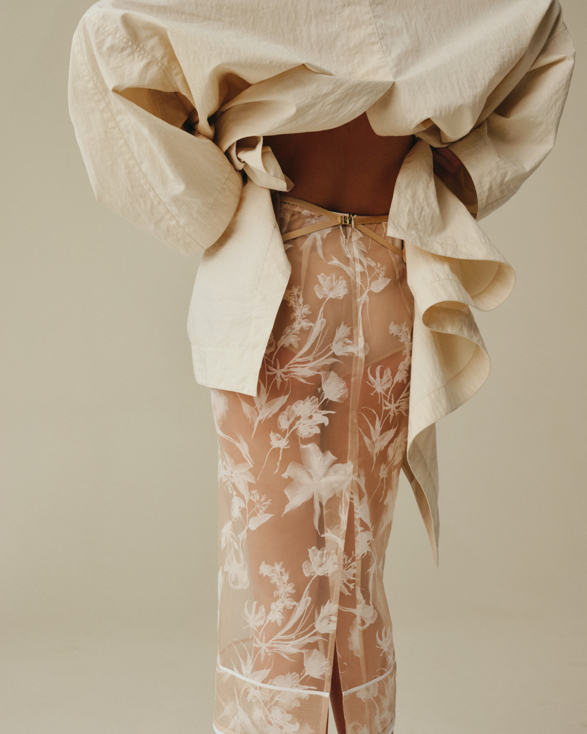 «Через прозорі тканини, нюдові відтінки, делікатні силуети ми ніби “цитуємо” тіло — без вульгарності, але з повагою до його природної краси. Тканини, з якими ми працюємо, нам у цьому допомагають», — додає Катя Сільченко.