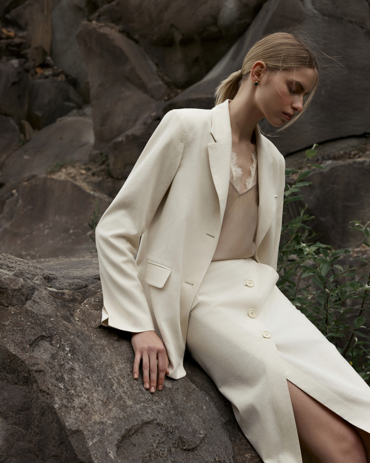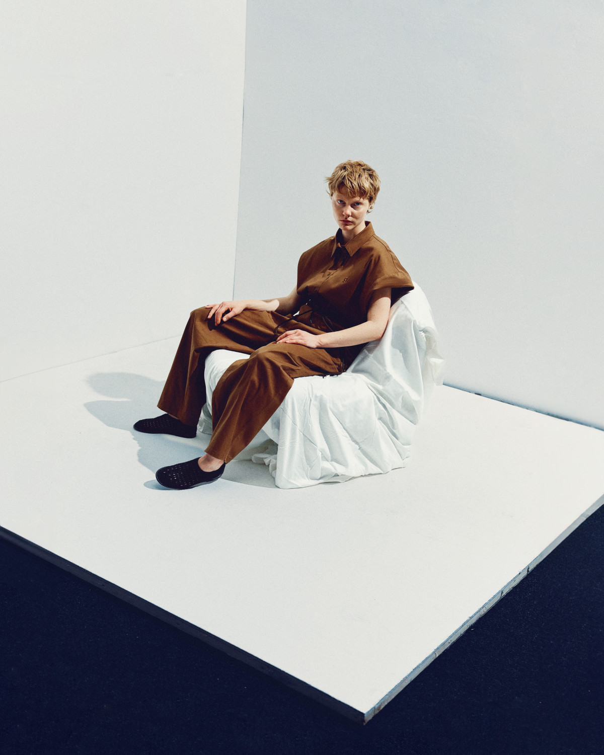 Колекція поєднала класичні утилітарні настрої бренду з романтичними фасонами й невагомими матеріалами: шовкова надлегка сукня на тонких бретелях з віскози, в`язані сети та сукні зі щільного бамбука та тонкі моделі з елементами драпірування. Основні бежеві, молочні та сірі переливи, доповнені чорними, блакитними та світло-жовтими відтінками, нагадують колірну гаму устриці.