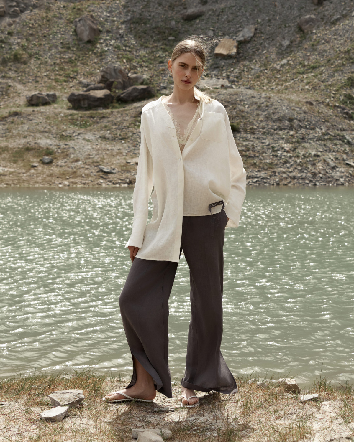 Літня капсула бренду логічно продовжує тон, заданий ще в минулому сезоні, — контраст між містом і природою та роль одягу як своєрідної нитки між цими протилежностями. Кожен образ із колекції, залежно від стилізації, підходить як для міської рутини, так і для розслабленого відпочинку. Так, прозора сукня одночасно може бути центральним елементом пляжного образу, а в комбінації з жакетом та брюками — частиною повсякденного business casual.