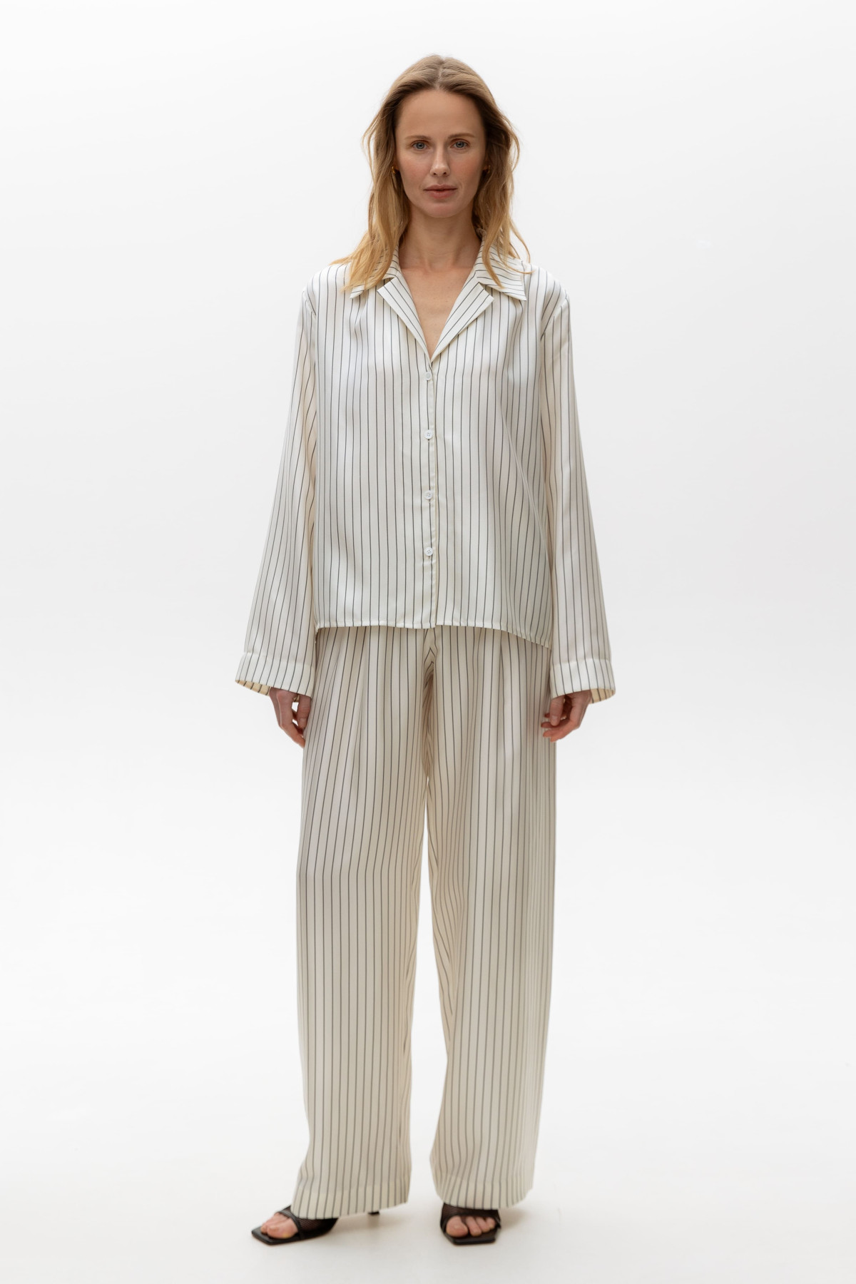 Крім цього, до лінійки увійшли костюми з брюками та шортами у піжамному стилі зі смугастим принтом, лонгсліви з тонкого трикотажу та лляні сорочки оверсайз.