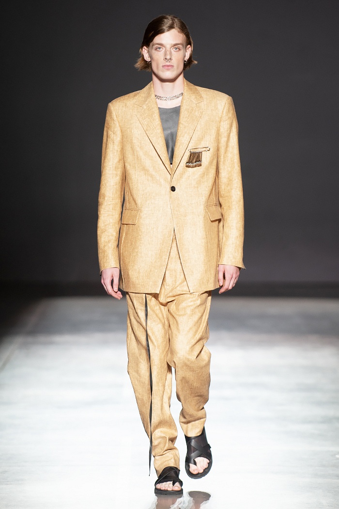 Отдельного внимания заслуживает мужская линия бренда, которую Буренина активно развивает с 2019 года. В следующем сезоне дизайнер предлагает мужчинам по-новому взглянуть на привычные предметы гардероба: брючные костюмы песочных цветов с необычными деталями будут одинаково уместны как в офисе, так и во время летнего круиза, сложносочиненные рубашки и вовсе можно носить без пиджака.