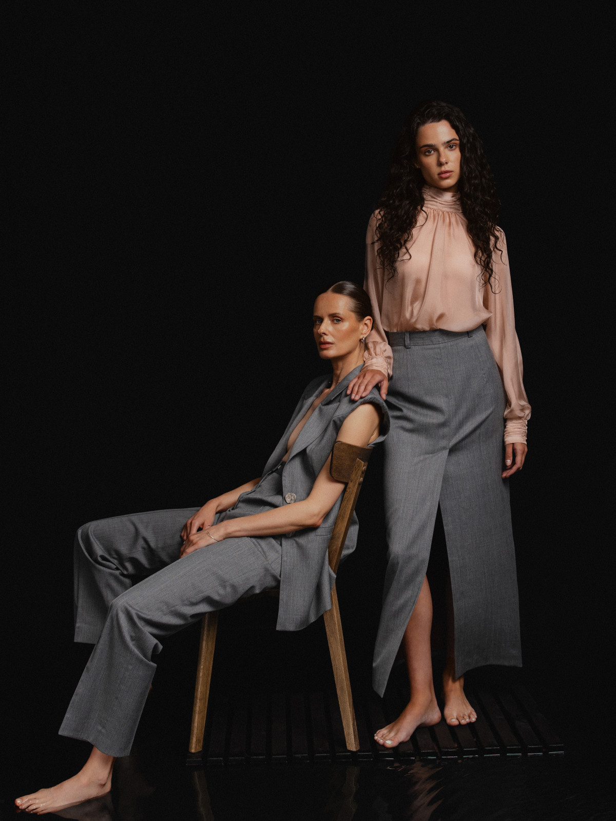 Дизайн колекції розроблено у співпраці з Наталею Дудкою — дизайнеркою, яка поєднала енергію епохи з сучасною лаконічністю. У палітрі — стримані осінні тони: глибокий сірий як фундамент спокою, благородний коричневий — теплий і насичений, відтінок хакі — символ природної рівноваги, а принт «гусяча лапка» — візуальний знак циклічності, який нагадує: стиль завжди повертається до свого джерела.