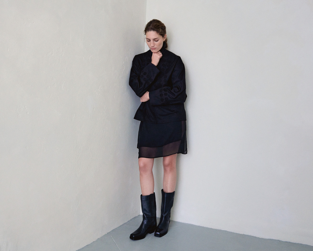 Чисті лінії, натуральні матеріали і стримана палітра занурюють у розслаблений спокій. В основі колекції — трикотажні костюми, об’ємні светри, куртки relaxed fit і взуття для будь-якої погоди: від лоферів і класичних черевиків до теплих уггів для морозних днів.