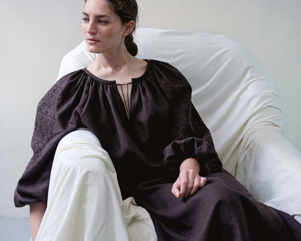 Бренд дібрав нішеві, тривкі й натуральні матеріали — льон, котон, тенсел, вовну та дикий шовк, що працюють у гардеробі цілий рік: нашаровуються та стилізуються самостійно.