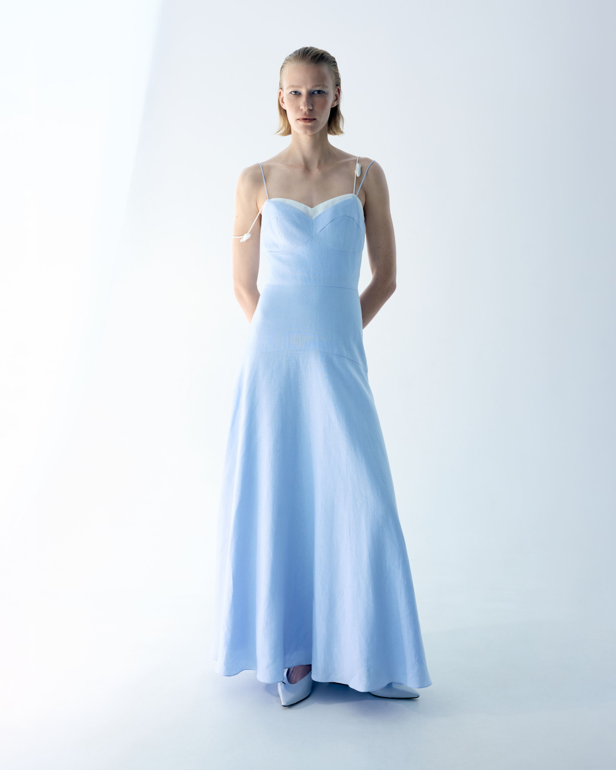 Мʼякі лляні текстури, невагомі силуети та керамічна фурнітура стали центральними елементами нової колекції J`amemme Resort`26, яка отримала назву Bleu de Côte d`Azur. Натхненна неквапливою атмосферою вечора на Французькій Рив`єрі, вона відтворює момент, коли світ сповільнюється, бриз стає м`яким, а час ніби розтягується із заходом сонця. Колекція пропонує свіжий погляд на літні образи, а фірмові коди J`amemme з`являються в нових і захоплюючих інтерпретаціях. Льон стає головним матеріалом сезону, актуалізований несподіваними вирізами, відкритою спиною та драматичними плечима. Природні та універсальні відтінки підкреслюють розслаблену естетику, втілену в невагомих сукнях міні та міді, повсякденних сетах зі спідницями, костюмах оверсайз, делікатних топах та сорочках. Фірмовий силует J`amemme з маскулінними плечима повертається, цього разу в лаконічних лляних костюмах, додаючи вишуканого штриху в літній гардероб. Мушлі займають центральне місце в основних образах сезону, з`являючись в якості універсальних аксесуарів до нових купальників бренду.