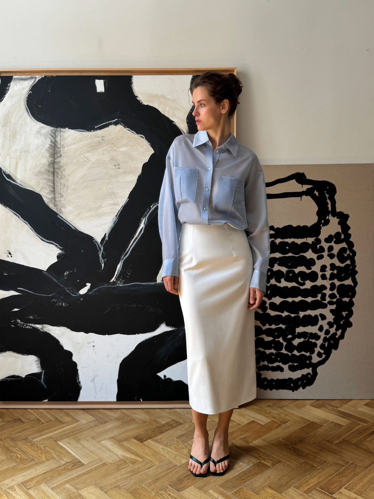 Літня колекція «Дихання простору» продовжує фокусуватися на речах, що дарують жінці впевненість, а також підсилюють її амбіційність та стиль. «Ця колекція — про повітря, яке можна носити. Про свободу, яка не потребує доказів. Про жінку, яка відчуває простір навколо й усередині себе», — коментує основну ідею засновниця бренду Світлана Пугач. До колекції увійшли напівпрозорі топи, лляні сукні та костюми. Переважають струмливі силуети та легкі матеріали — кожен образ дає тілу дихати, а погляду — відпочивати. У виробах використано натуральний льон — грубуватий і живий, як земля, та шовк, що мов світло ковзає по шкірі. Зіркою колекції цього разу стає рожевий брючний костюм. Витриманий, лаконічний, але з характером.