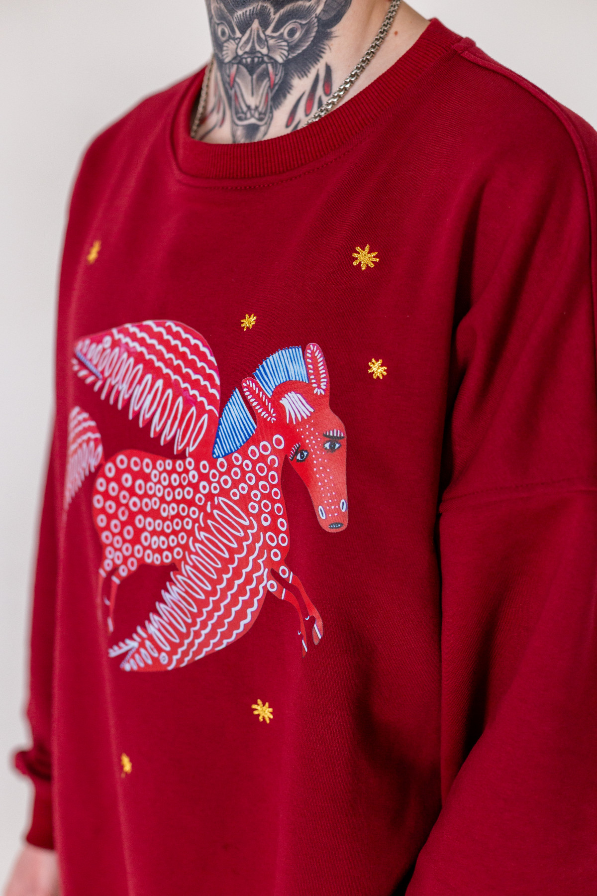 - світшот «Зоряний Пегас» за мотивами малюнку «Коньок-горбуньок весь світ облітає і і на міста прилітає» 1971 року.