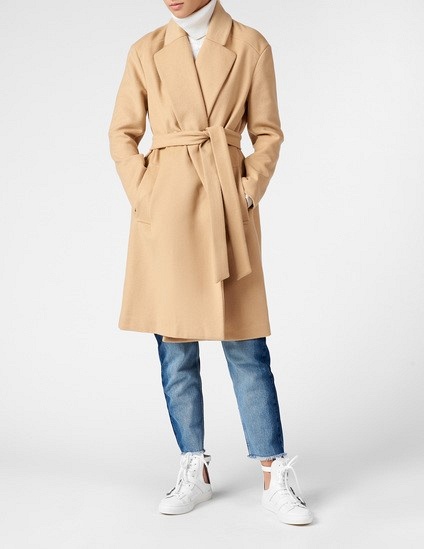 Теплый бежевый оттенок и фасон на запах — самый практичный и незаменимый вариант верхней одежды для переходного периода. Для составления более трендовых образов выбирайте клетчатое пальто прямого кроя. А для повседневных выходов — комфортный блестящий пуховик.