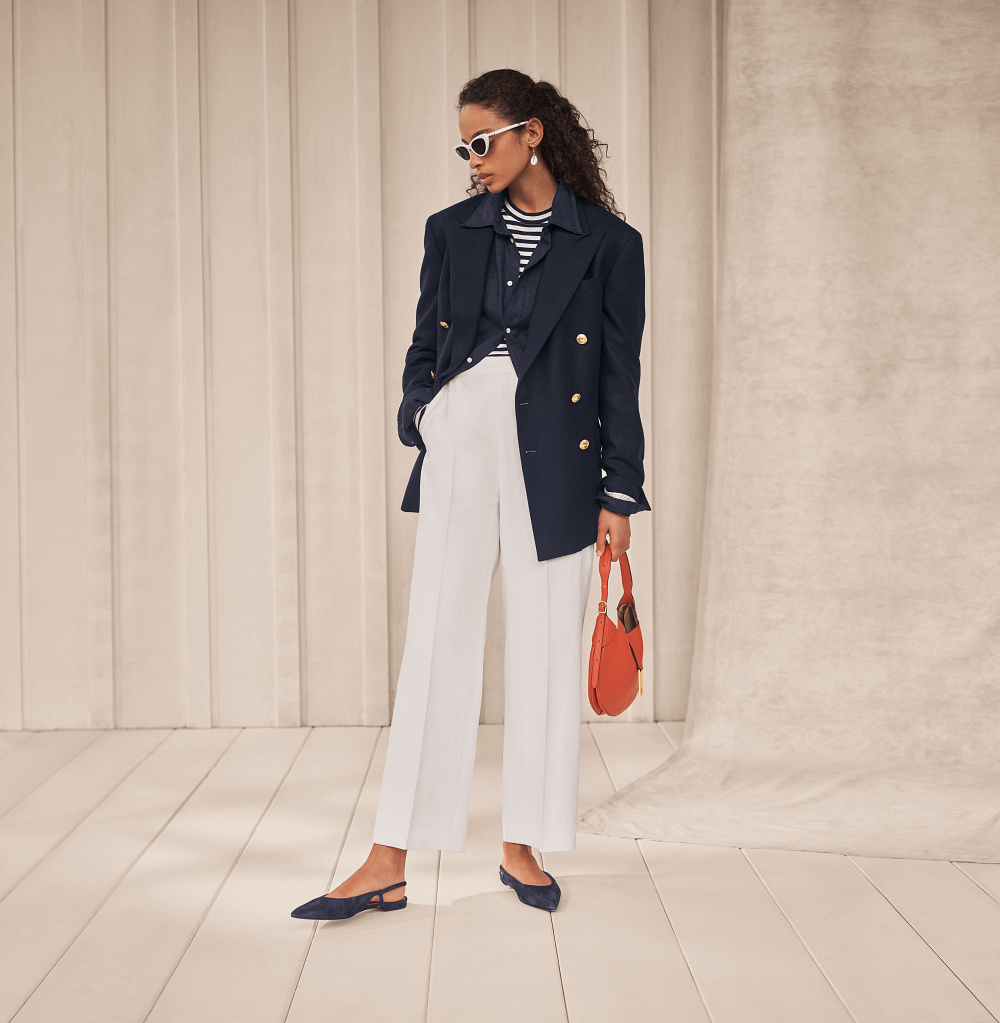 Для першого жіночого образу ми згадаємо настанову Крістобаля Баленсіаги про те, що «елегантність — це усунення зайвого». Тож, опираючись на цю просту істину, ми з легкістю складемо лук, у якому можна прогулятися квітучим містом, пообідати в улюбленому закладі та нарешті зустрітися з тією самою подругою, посиденьки з якою ви планували вже не один місяць.