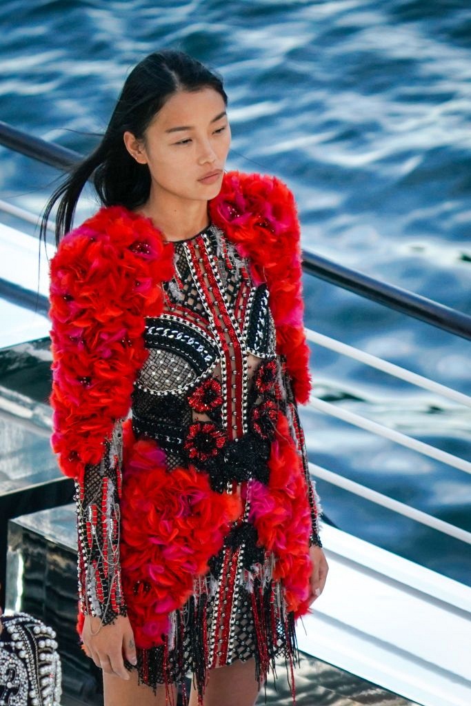 Оливье Рустен провел шоу в режиме социальной дистанции на барже, плывущей по Сене в Париже. В коллекции были представлены как новые творения, так и архивные работы Пьера Бальмена, Эрика Мортенсена и Оскара де ла Ренты. Таким образом дизайнер решил познакомить зрителей с историей бренда, который в этом году отмечает свое 75-летие.
