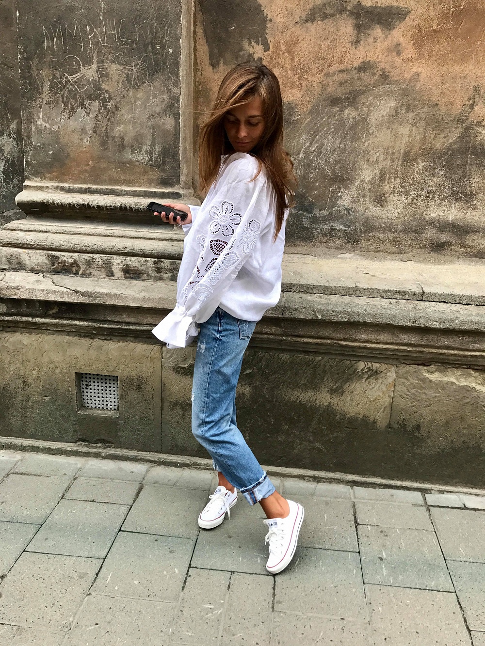 Белоснежная вышиванка — вечная классика, символизирующая мир, чистоту и невинность. Именно поэтому невесты, отправляясь под алтарь, всегда облачались в белые наряды. И хотя белая одежда ассоциируется с торжеством, лаконичная вышиванка составит отличную компанию джинсам или строгим брюкам длины 7/8.
