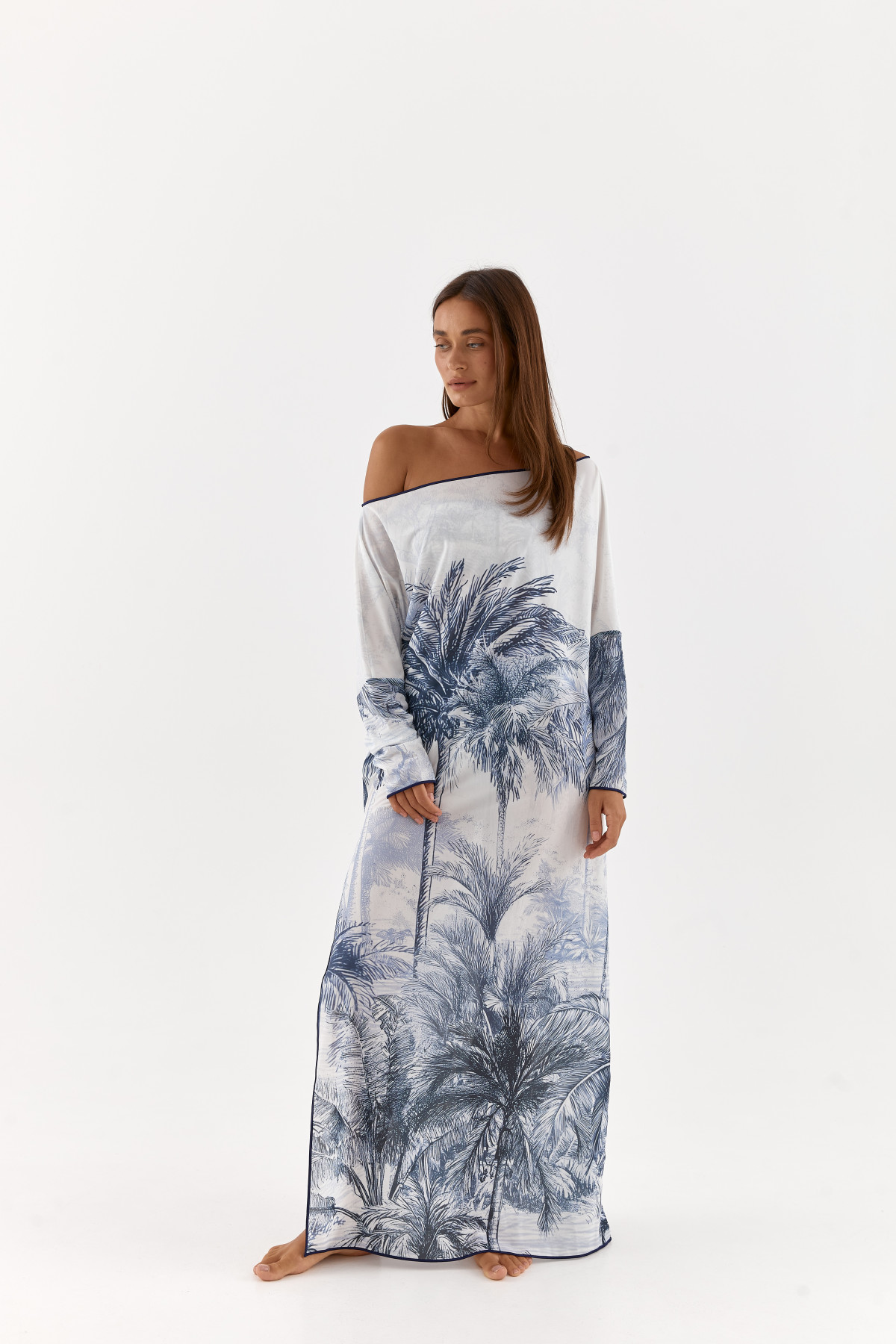 У колекції — сукні, що не обмежують руху, легкі костюми, які м’яко лягають на фігуру, та топи для сонячних днів. Делікатні ажурні візерунки, тонкі зав’язки й напівпрозорі вставки додають глибини, але не відволікають від головного — свободи руху й відчуття моменту. Палітра включає молочний, блакитний і глибокий чорний. Перший — як розсіяне ранкове світло, другий — як небо над морем, третій — як вечірній спокій. Усі речі виготовлені з удосконалених натуральних тканин — купро, віскози та бавовни, — які взаємодіють із тілом та середовищем, супроводжуючи від гамака на пляжі до вечірньої прогулянки містом.