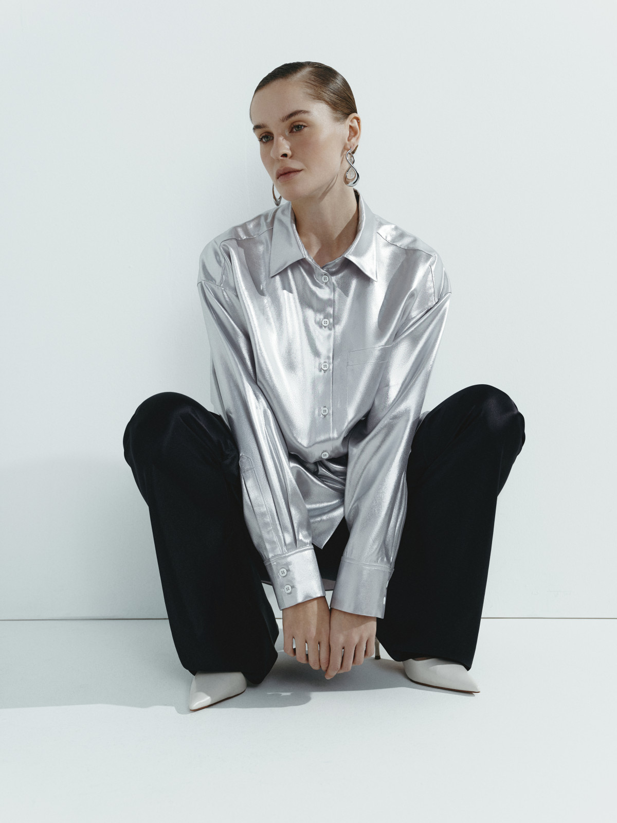Обираючи святковий образ, не обов’язково обмежуватися сукнею. Бренд продемонстрував і цікаві альтернативи: готові сети зі штанів та напівпрозорих лонгів з сяйнистою люрексною ниткою. Як разом у комплекті, так і окремо ці речі вдало доповнять holiday looks.