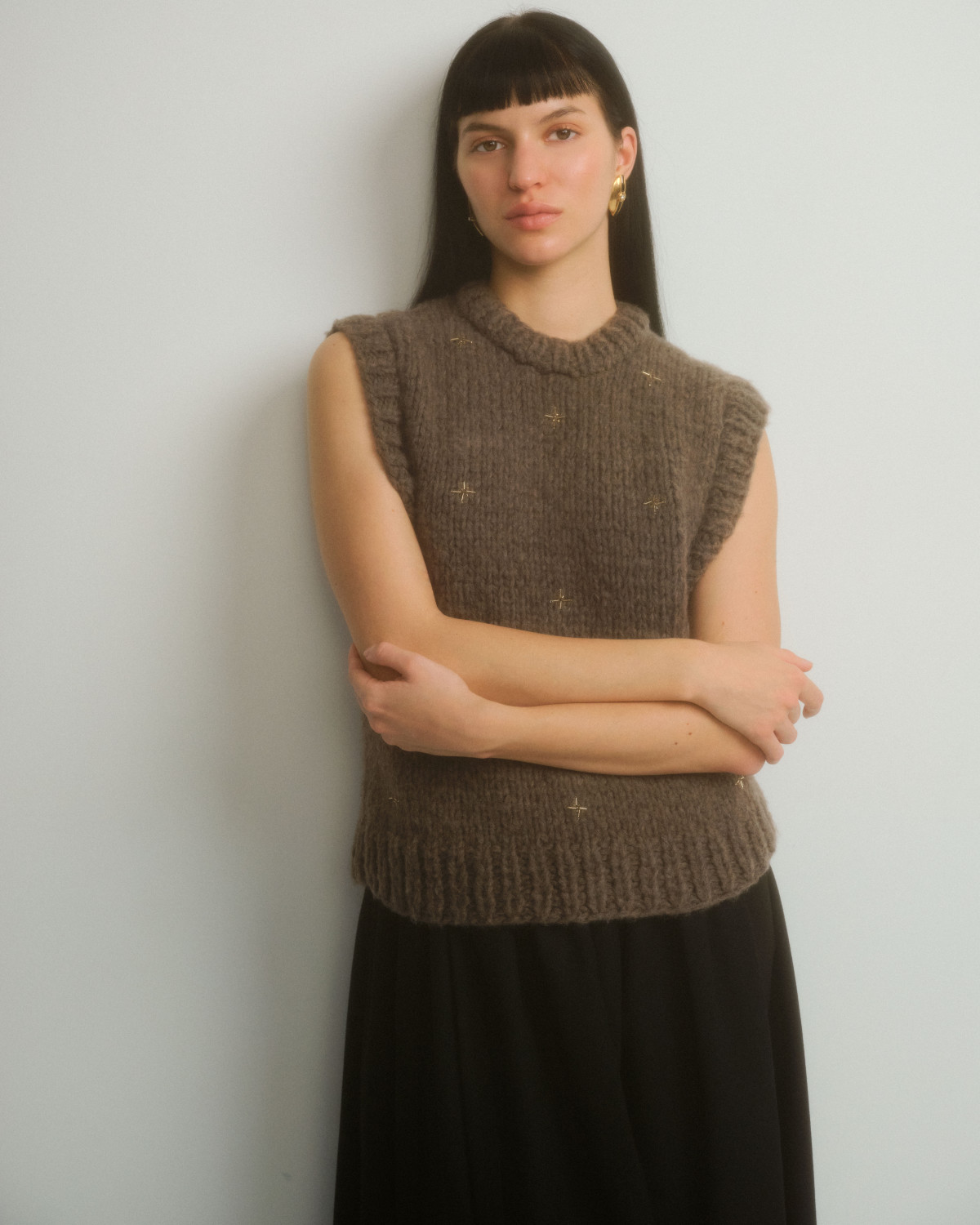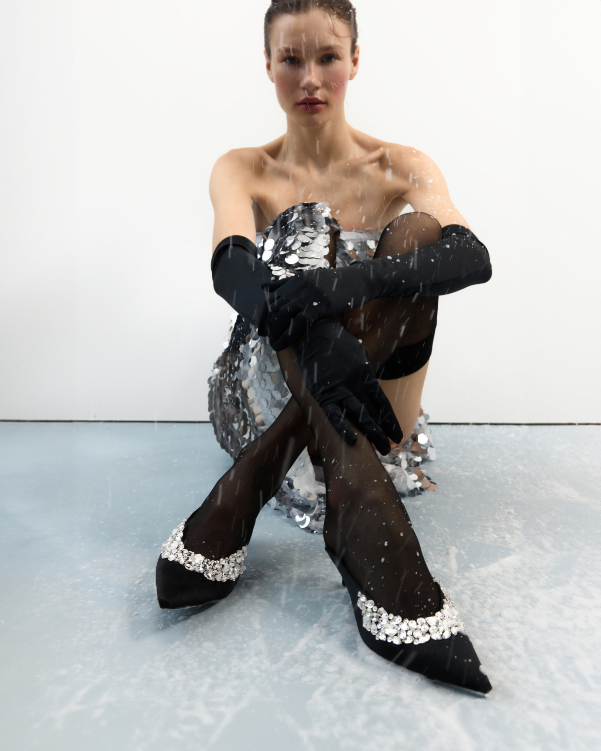 Сукні колекції — від грайливих міні до витончених максікомбінацій — створені для зустрічей, які запам’ятаються надовго. Головним акцентом стала модель із золотистим драпіруванням: елегантна, спокуслива і надзвичайно вишукана. Також заслуговують на увагу блискучі сукні, що мерехтять, мов дискобол, та спідниця з пір’ями й паєтками — ідеальний вибір для тих, хто цінує баланс між гламуром і мінімалізмом. Для спокійніших, домашніх вечорів колекція пропонує стильні кардигани, які легко інтегрувати у святковий гардероб, а після свят комбінувати зі штанами прямого крою чи спідницями.