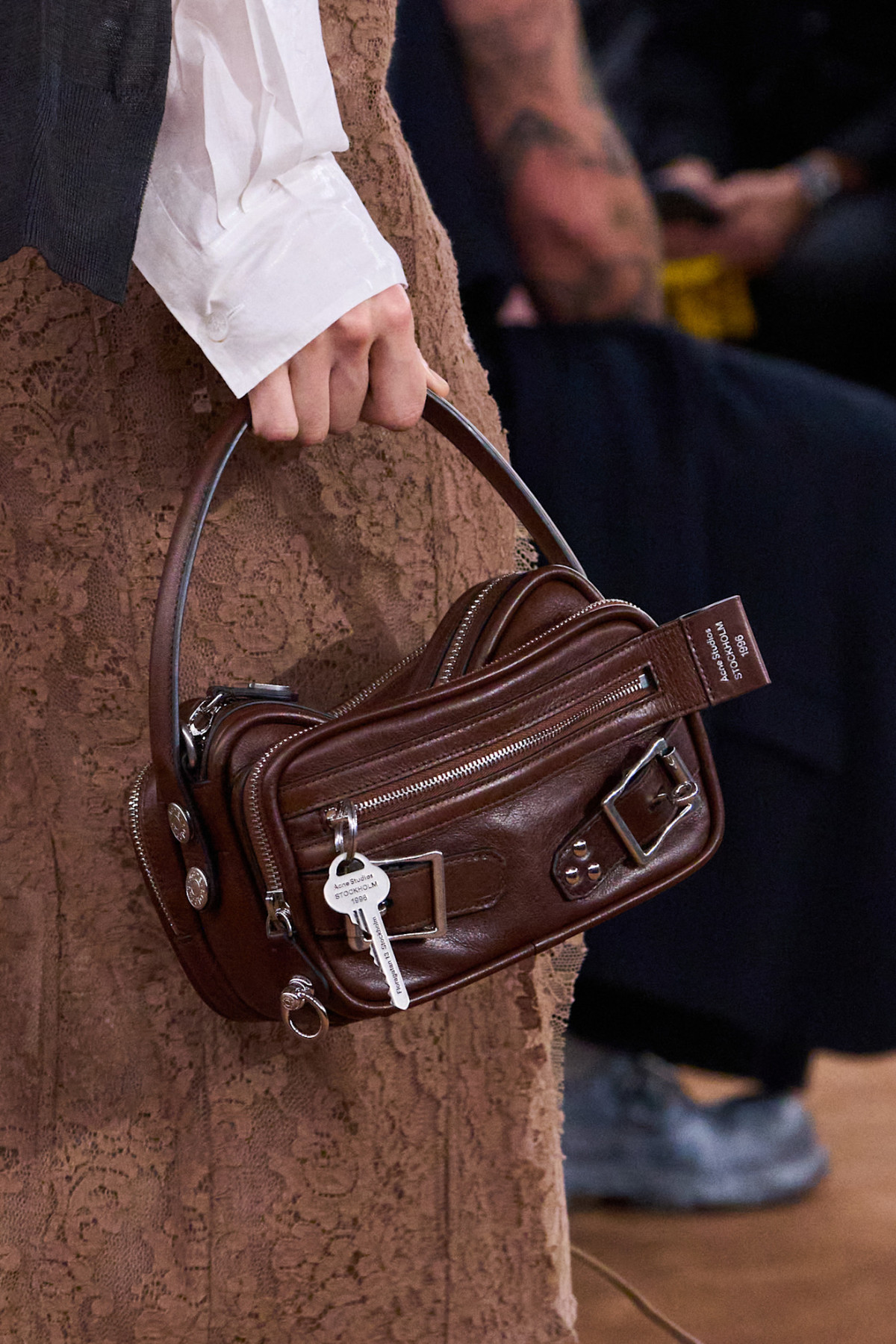 Містка прямокутна сумка середнього розміру, як-от в Acne Studios чи Loewe, стане зручним компаньйоном у подорожі. У неї можна покласти не лише зарядний пристрій, косметичку та фотоапарат, а й тонкий кардиган на випадок похолодання.