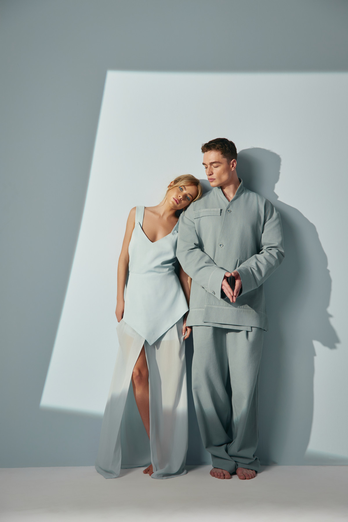 Цього сезону в капсульну лінійку увійшли як жіночі, так і чоловічі моделі. Всі вироби створені з натуральних тканин — віскози, шовку, бавовни та котону, аби дарувати відчуття свободи в тілі, що дихає. Це одяг, у якому комфорт і естетика рівнозначні. Натхненням для колекції стали внутрішній спокій і тиша, де зароджується справжня сила. COVER працює з п’ятьма ключовими кольорами: м’ятним, блакитним, бежевим, білим і чорним — аби створити світ, у якому речі говорять тихо, але впевнено. Монохром став головною мовою SS’25: колір одягу перегукується з простором, утворюючи візуально чисті, цілісні композиції, де ніщо не відволікає від головного — себе. SS’25: The Quiet Code — це колекція про баланс. Про простір, у якому можна дихати. І про силу, що відчувається в тиші.