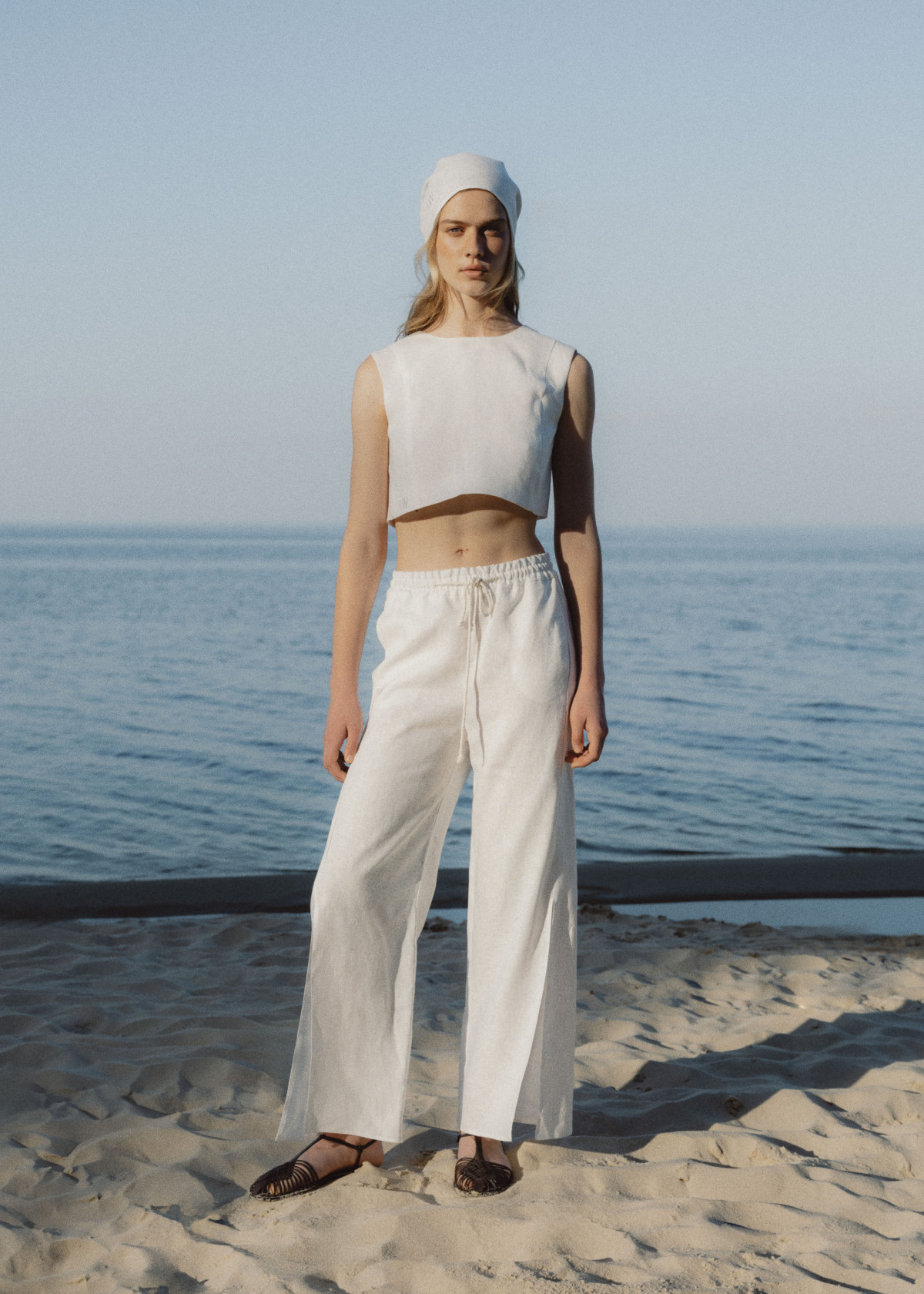Blanc-a-porter бренд одягу представляє свій сезонний круїзний дроп у новому прочитанні. Звичні для бренду весняно-літні льняні лінійки в минулих сезонах складались із романтичних, більш жіночних позицій, проте цього разу TOTAL WHITE обирає мінімалістичну базу, де переважають unisex-моделі. Linen Basics’25 — дроп з натурального льону з невагомими та майже непомітними деталями: ґудзиками з натуральної мушлі, завʼязками у вигляді декоративного каната та вишитим лого, створено довкола ідеї білого total look. Знаковий білий «круїзний» костюм від TOTAL WHITE тепер можна скласти з однобортним жакетом та костюмними шортами вільного крою, пляжними шортами на резинці або штанами з розрізами. Базова льняна лінійка також доповнена класичною сорочкою з широкими рукавами, кроп-топом із відкритою спиною та легким сарафаном із завʼязками. Вперше в круїзному дропі бренд експериментує з аксесуарною групою та додає льняну бандану як багатофункціональний аксесуар, що можна стилізувати як головний убір, додатковий шар поверх жакета чи шортів, повʼязку на запʼястя чи сумку.