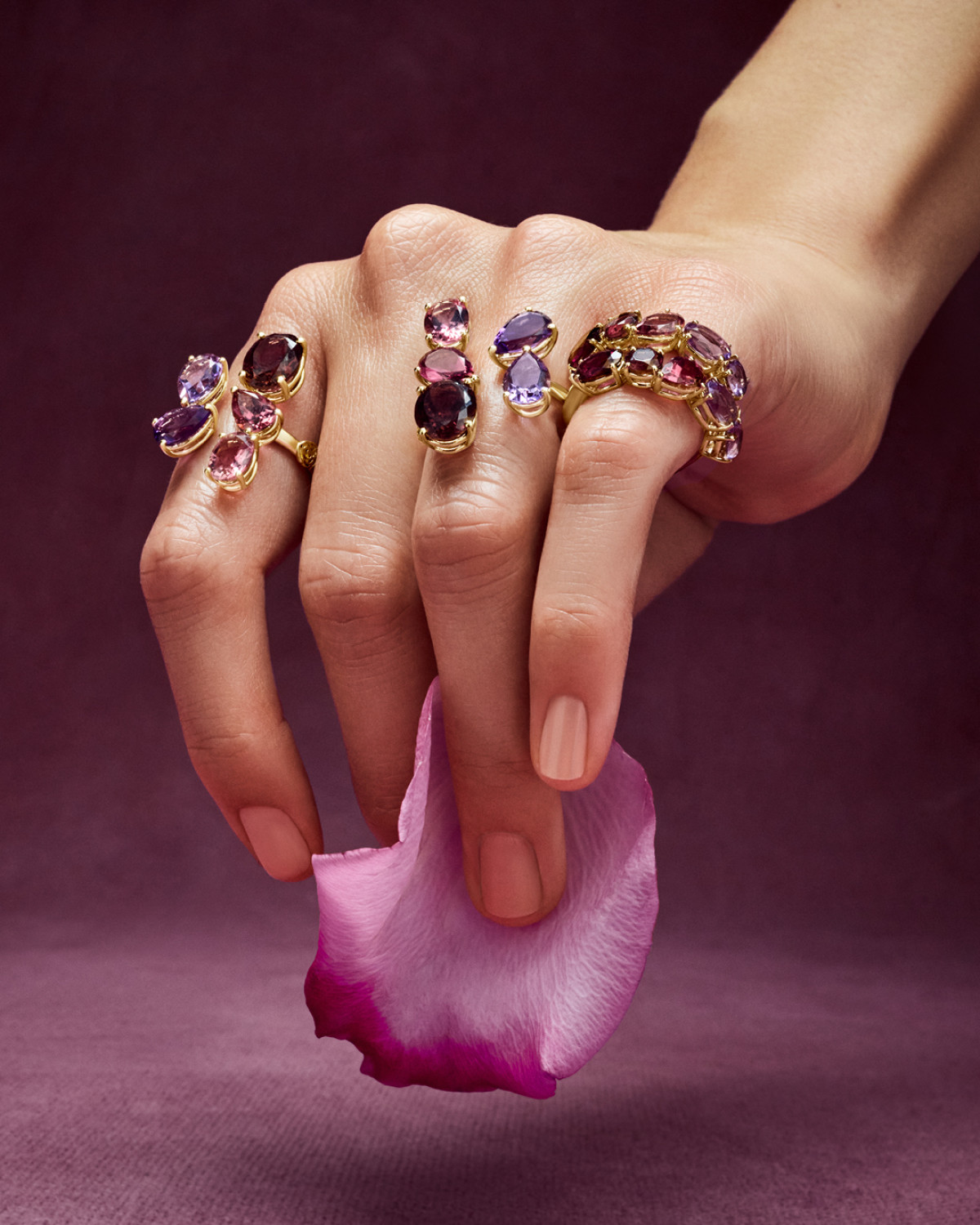 Глибокий червоний і насичений зелений — кольори, що традиційно асоціюються зі святом. Рубіни й смарагди додають образу драматичності, статусності та емоційної глибини. Це вибір для тих, хто хоче зробити прикраси ключовим елементом образу.
