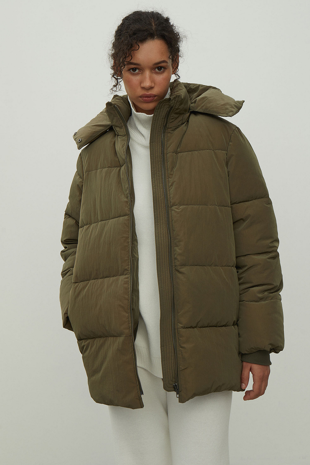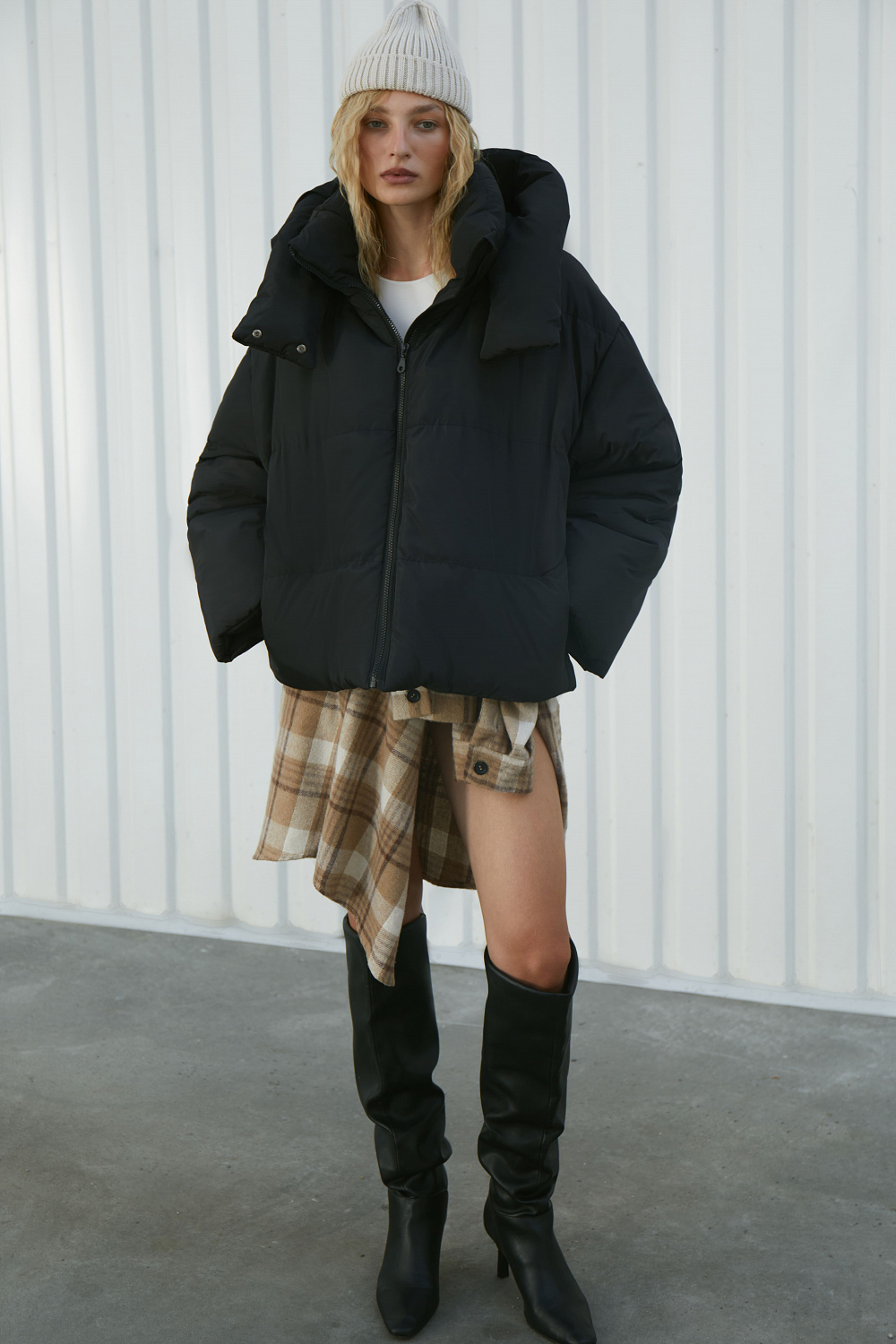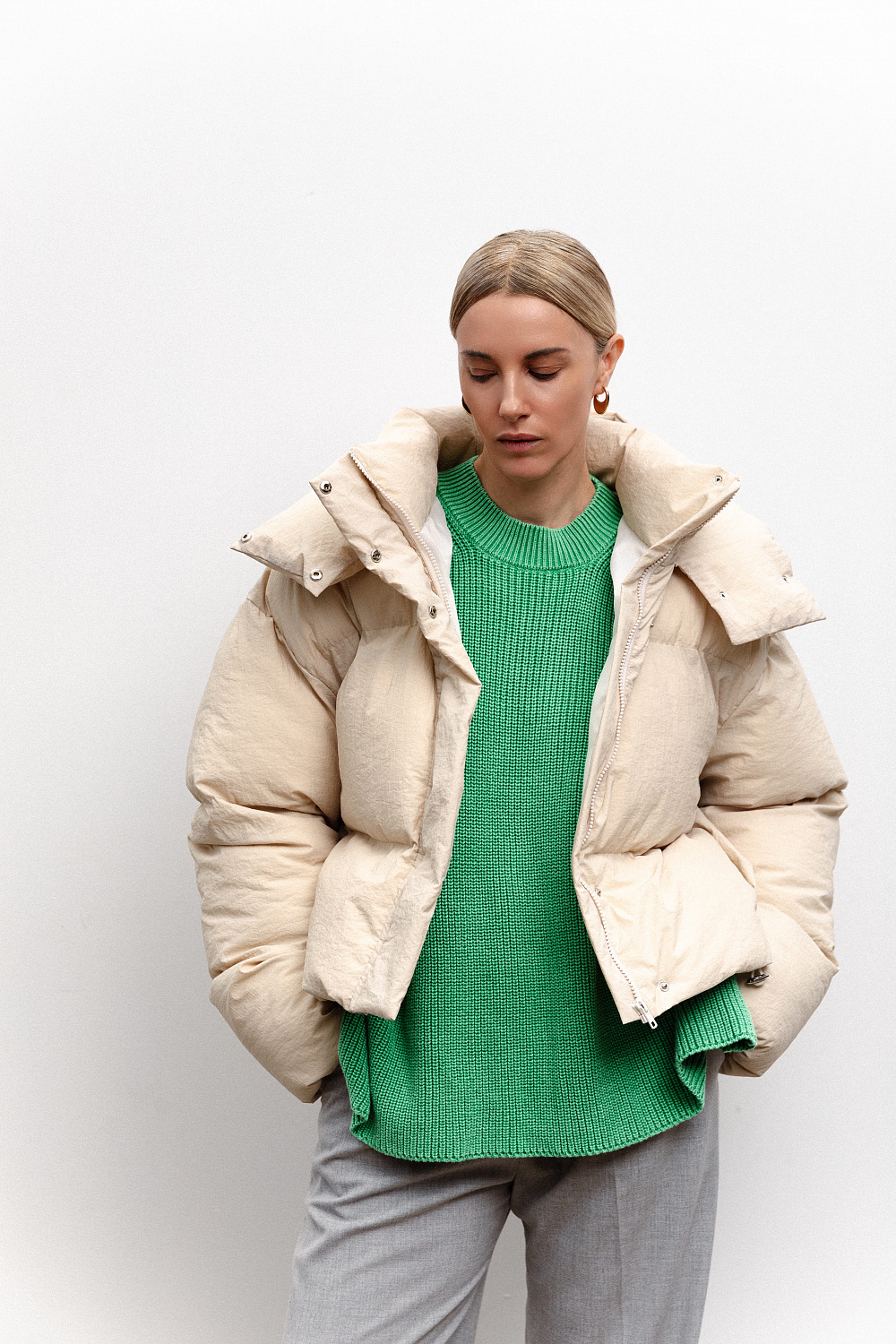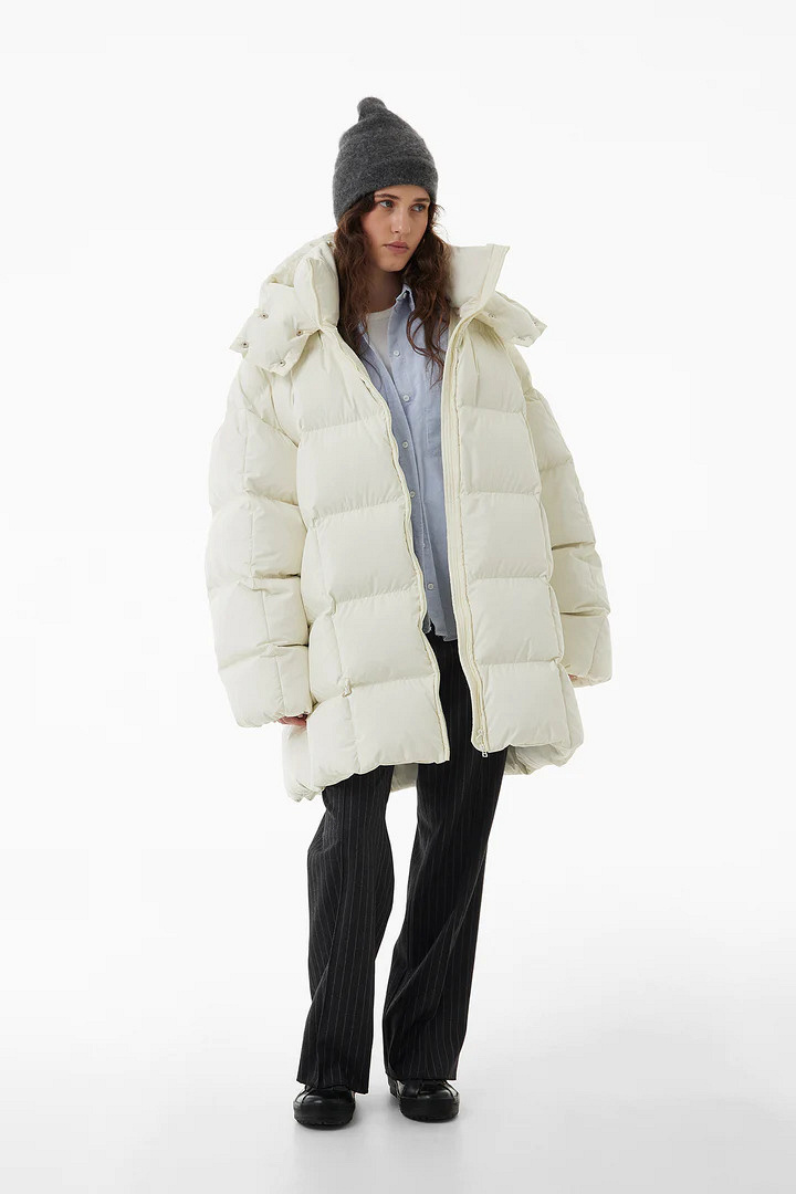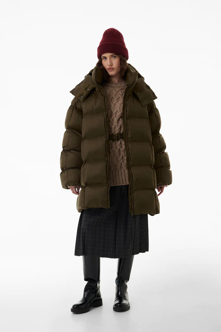 Щільно набитий лебединим пухом, комфортний пуховик вільного крою — завжди вдала ідея для прохолодних і морозних днів. Високий комір-стійка та вшитий капюшон захистять від вітру, а у прорізні кишені з легкістю помістяться телефон, помада та ключі від авто. Водночас універсальна колірна гама закриє всі питання щодо стилізації пуховика: носити його можна як із джинсами baggy, худі й кросівками, так і зі шкіряними брюками, шовковою блузою та ботильйонами на підборах.