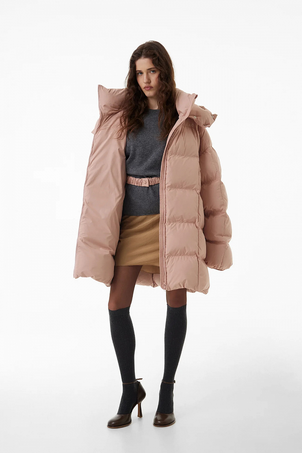 У новому сезоні Katsurina переосмислили свій знаковий пуховик та зробили його легшим і комфортнішим. Попри технологічні зміни (відтепер пуховики наповнені на 90% гусячим пухом та на 10% пером) модель зберегла класичний і улюблений всіма оверсайз-силует, під який можна вдягнути як трикотажну сукню, так і об’ємний в’язаний светр. Сюрприз для тих, хто взимку надає перевагу кольору: пуховики у відтінках рожева пудра та бейбі блу.