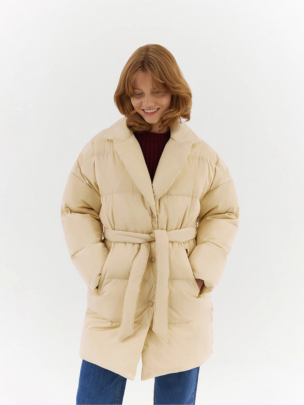 Така модель пуховика автоматично додає образам елегантності й робить силует більш жіночним. Попри це він з легкістю комбінується з джинсами, костюмами з трикотажу і навіть спортивками. Безперечним плюсом новинки від diadia є водовідштовхувальна тканина, що особливо актуально для дощової пізньої осені. Про затишок бренд також подбав: модель наповнена гіпоалергенним екопухом, тож ви точно не замерзнете.