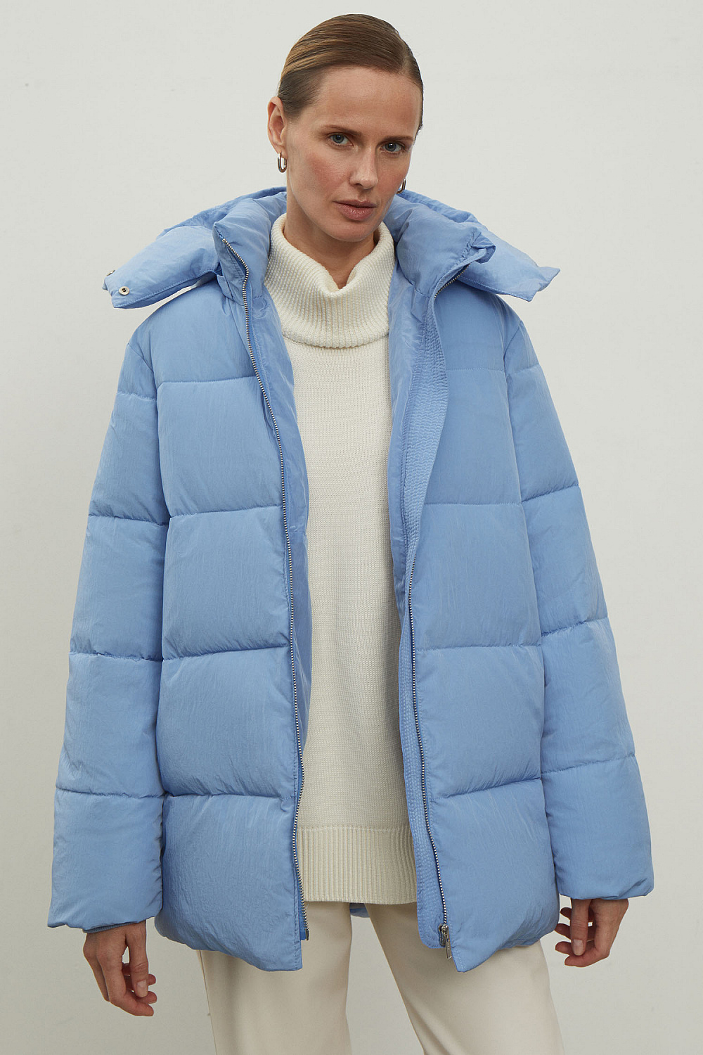 Функціональний пуховик вільного крою, наповнений синтепухом, у трьох кольорах (світло-сірий, блакитний та хакі) пропонує бренд The Lace. Ідеальна модель на щодень, яку легко міксувати з більшістю речей у вашому гардеробі.