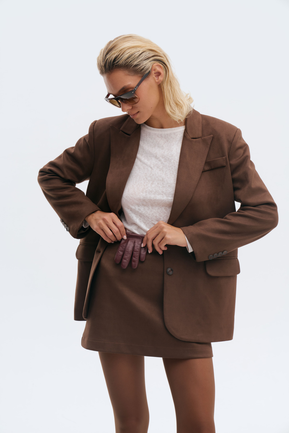 Одним із головних трендів серед жакетів стали коричневі моделі із замші — матеріалу, що отримав неабияку популярність цього сезону. Подібні варіації нагадують ті предмети, що їх мали у своєму гардеробі ледь не всі зірки 90-х. Зараз же замшеві жакети запропонували iam та IWOMAN, одночасно й показавши їхнє поєднання з мініспідницями та поло.