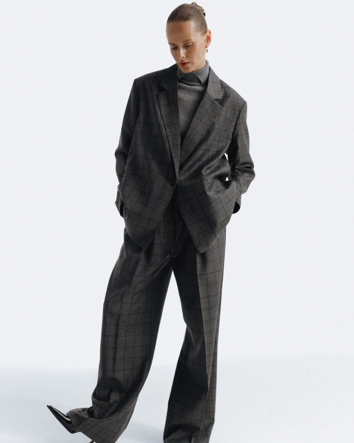 Крім цього, бренди порадили придивитися й до варіантів з принтами, зокрема з найактуальнішим у цю пору картатим. Жакети теплого коричневого відтінку у клітинку з’явилися в лінійці HUKH, тоді ж як більш базові сірі — у KATERINA KVIT та A.M.G.