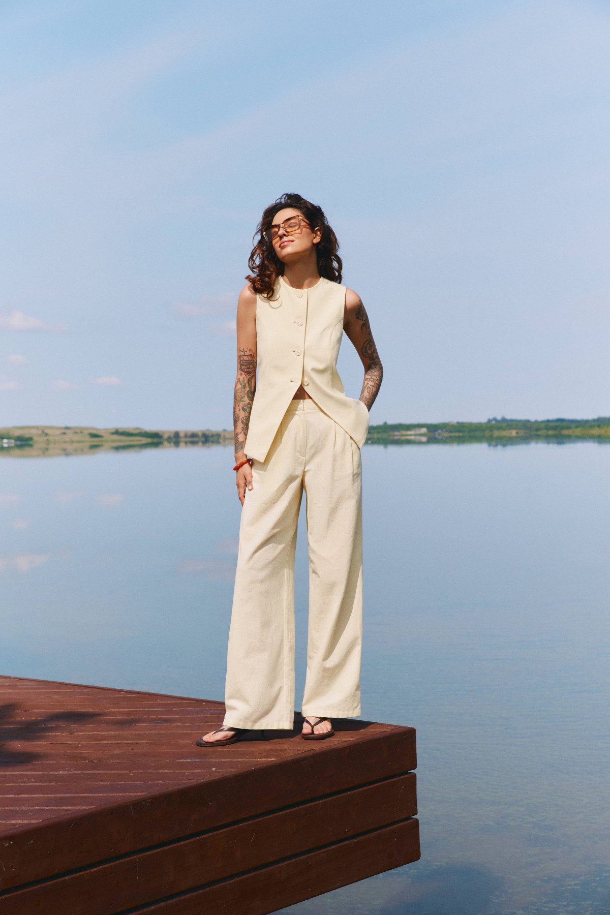 Цього літа LILCORNER презентує нову колекцію Cruise & Nuits Blanches — історію про стан у моменті. Без поспіху. Без надлишку. У двох ритмах — денному й нічному. Cruise — світла частина колекції, натхненна ранковим спокоєм. У фокусі — butter yellow та ivory. Силуети — чисті, вільні, як перше світло. Є речі, що огортають тіло м’яко — як сукня вільного крою. Є ті, що лише торкаються — як відкритий жилет, лаконічний боді чи пелюсткова фактура на мініспідниці. Ці образи не створюють настрій — вони його продовжують. Nuits Blanches — капсульна лінія вечора, де кожна річ — як продовження тіла. Головний образ — топ із вузьким шарфом і мініспідниця. Лаконічна пара, у якій форма говорить більше, ніж прикраси. В інших образах — той самий ритм: точність ліній, спокій тканин, тиша білого. Це про вечір, у якому вже не треба нічого додавати. «Це речі, що не грають ролей. Вони просто живуть із тобою: у тиші ранку, в м’якому русі, у світлі, яке ще не стало денним», — зазначає креативний директор бренду.