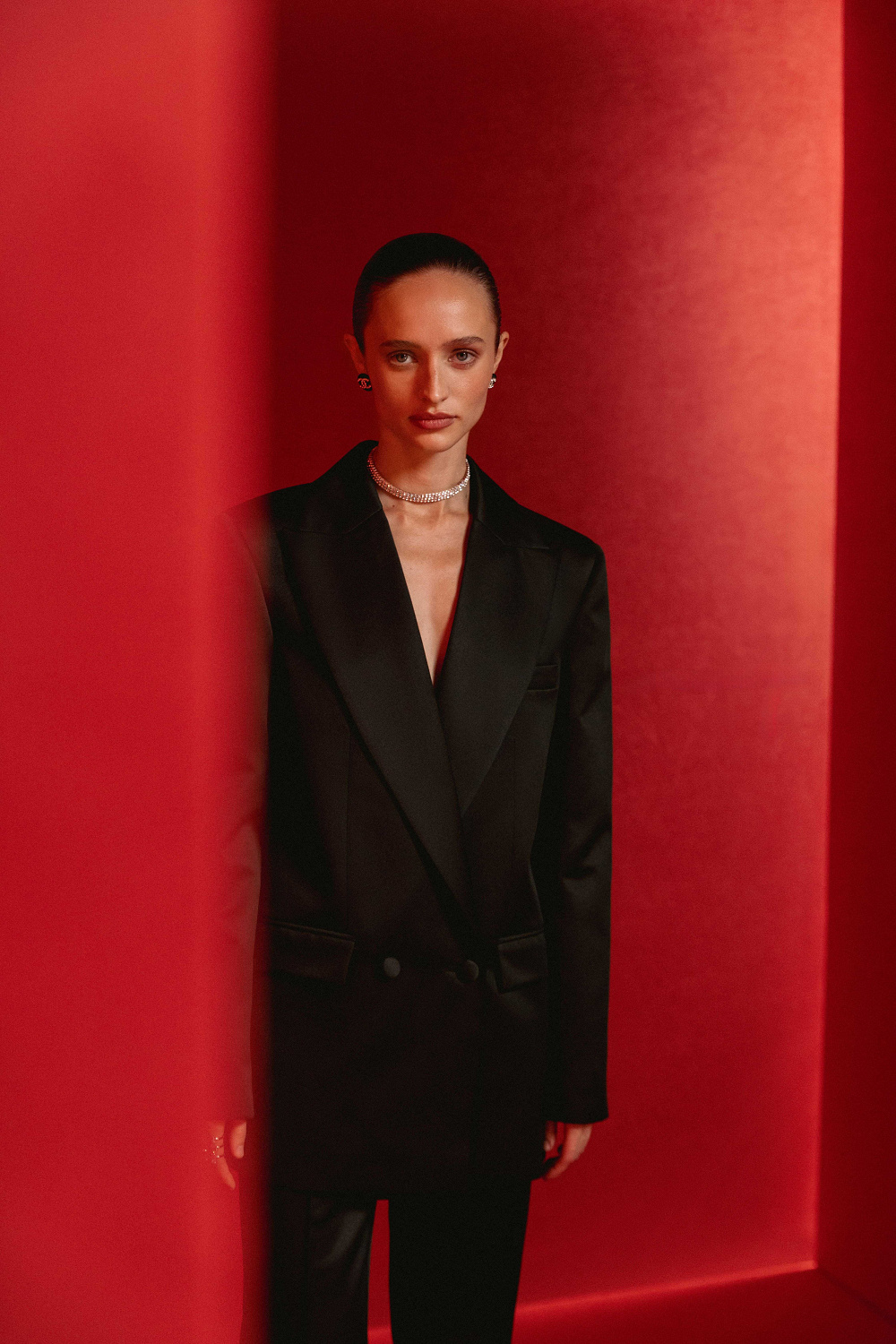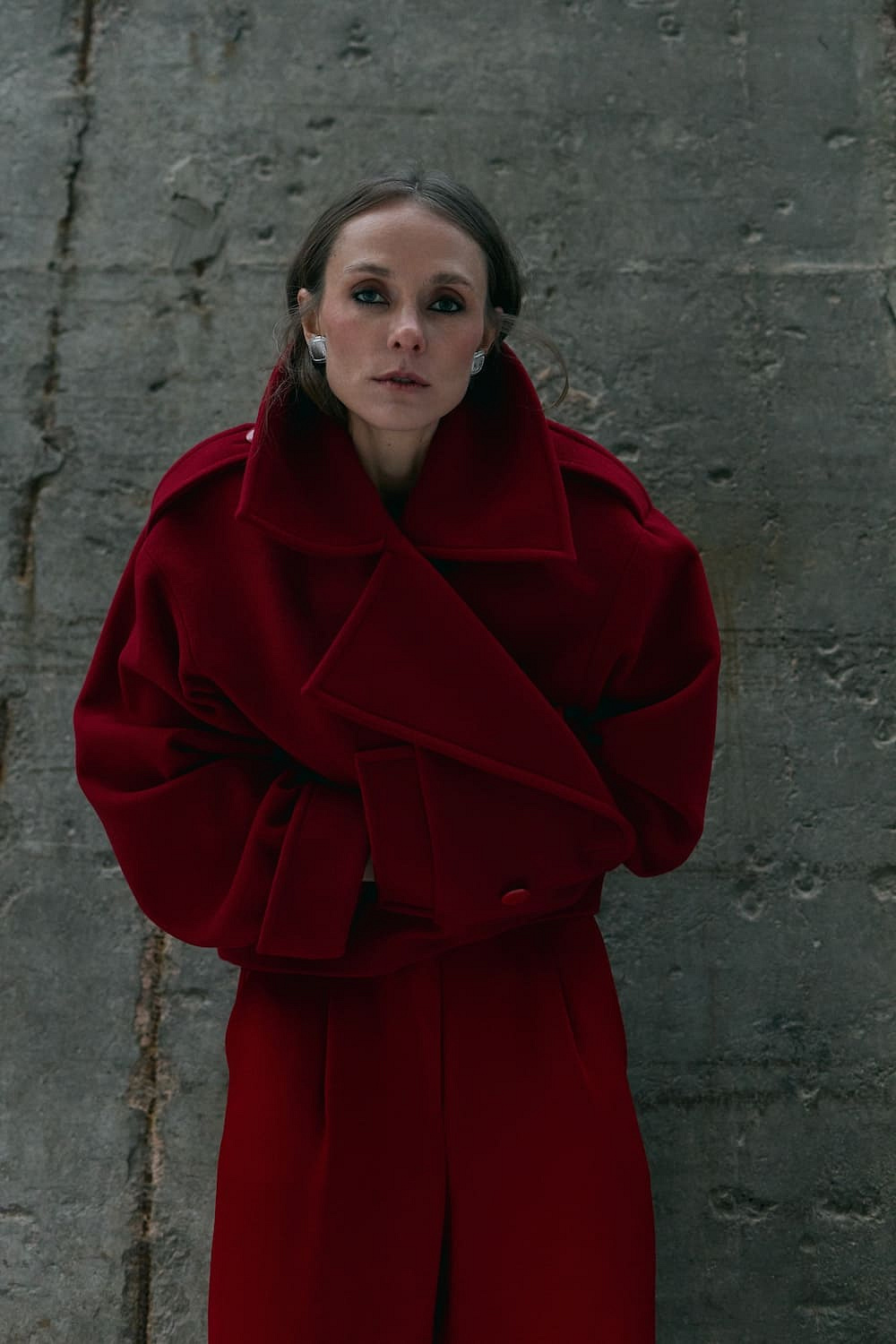 У вечірній капсулі бренд презентував комфортні та водночас вишукані образи в лаконічній палітрі з благородного червоного та стриманого чорного кольорів. М`яка вовна, тендітний шовк, структуровані костюмні тканини та яскраві лелітки — такі текстури також додають святковості одягу. Дотримуючись концепції базового капсульного гардероба, команда Blast Out Studio підкреслює жіночу вроду класичними, елегантними, позачасовими силуетами.