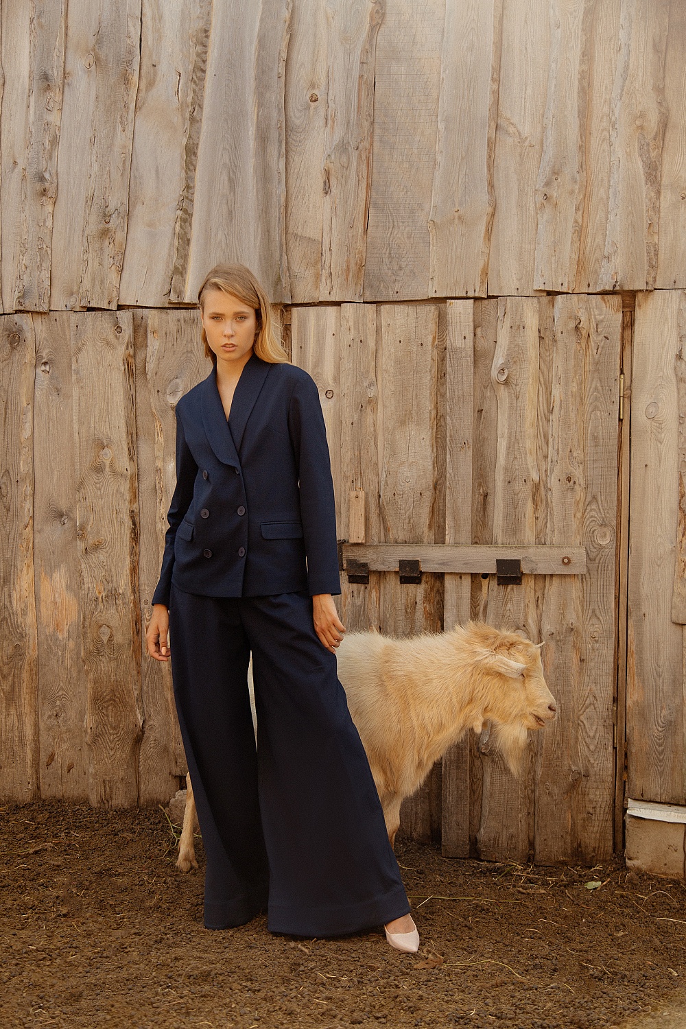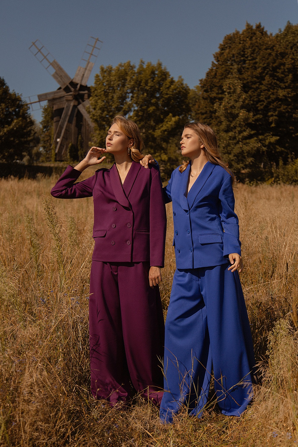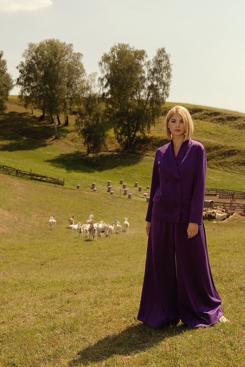 Эта же концепция воплощена в осенней коллекции Home Wings, которая представляет собой теплые двубортные костюмы из костюмной ткани с шалевым воротом, костюмы из вязаного трикотажа с гольфом и демисезонные модели в ярких оттенках: фиолетовом, синем, голубом, пудровом, сером.