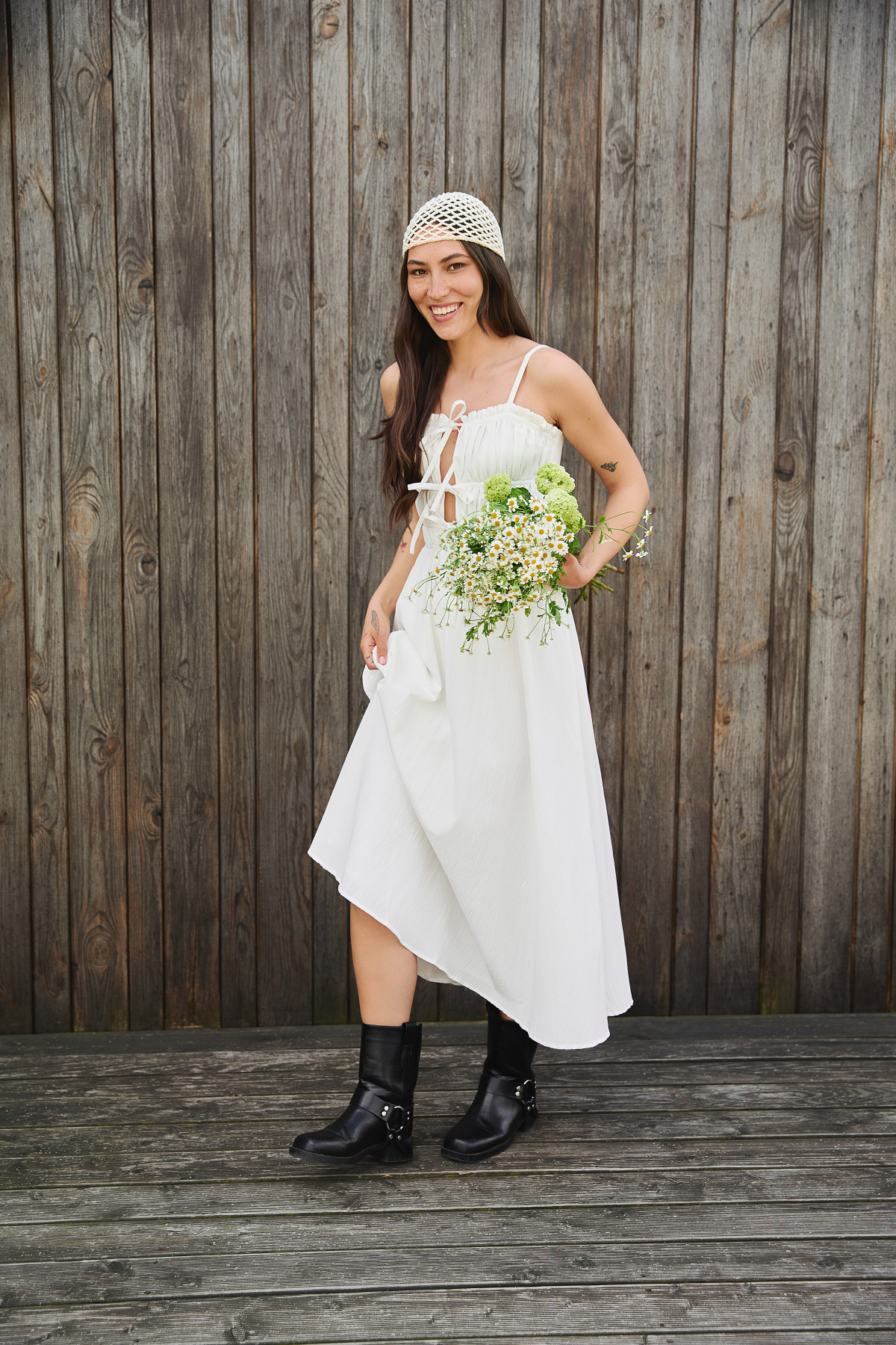 Літня колекція diadia — це відображення моментів, у яких народжується натхнення: теплі вечори, прозоре небо, шелест листя, сіль на шкірі після моря. Це атмосфера, яка закликає жити повніше й обирати те, що резонує саме з вами. Бренд поєднаа легкі текстури з базою, щільні тканини з напівпрозорими, щоб дати змогу кожному бути собою та щодня збирати нові образи. У колекції представлені сорочки з легкої бавовни, базові та графічні футболки, ніжні сукні, джинсові шорти з натяком на 90-ті та легкі хустки — акцент, що додає образу завершеності.