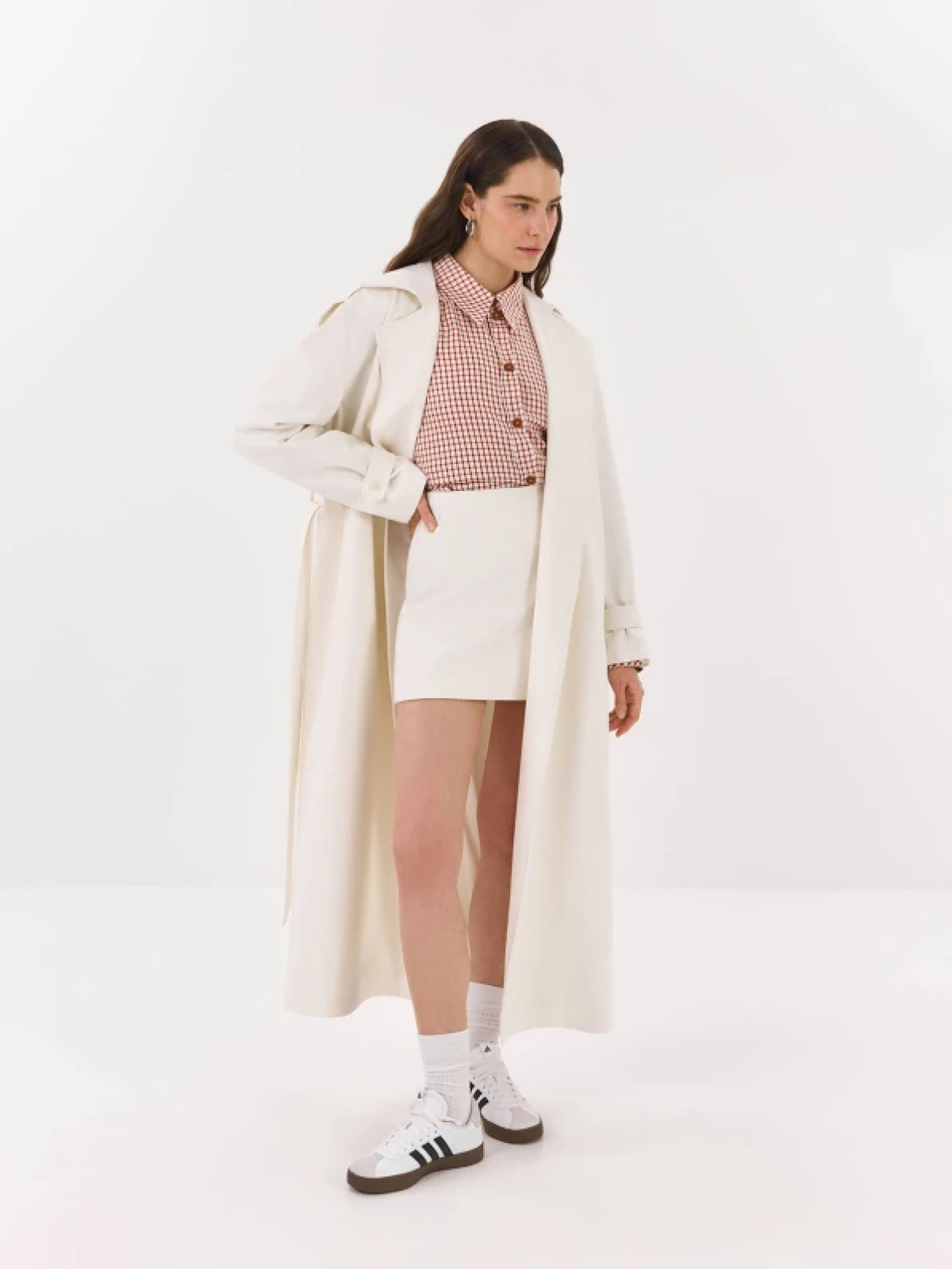 Цього сезону світові бренди продемонстрували безліч варіацій тренчів. Здебільшого дизайнери зупинялися на класичних варіантах у бежевому, коричневому чи білому відтінку, які з легкістю поєднаються з іншим одягом. Однак на подіумах траплялися й дещо цікавіші моделі — в довжині максі чи, навпаки, вкорочені, шкіряні в бунтівній естетиці чи, до прикладу, доповнені принтами. Детальніше тренди осінньої пори серед тренчів ми розглядали в нашій добірці.